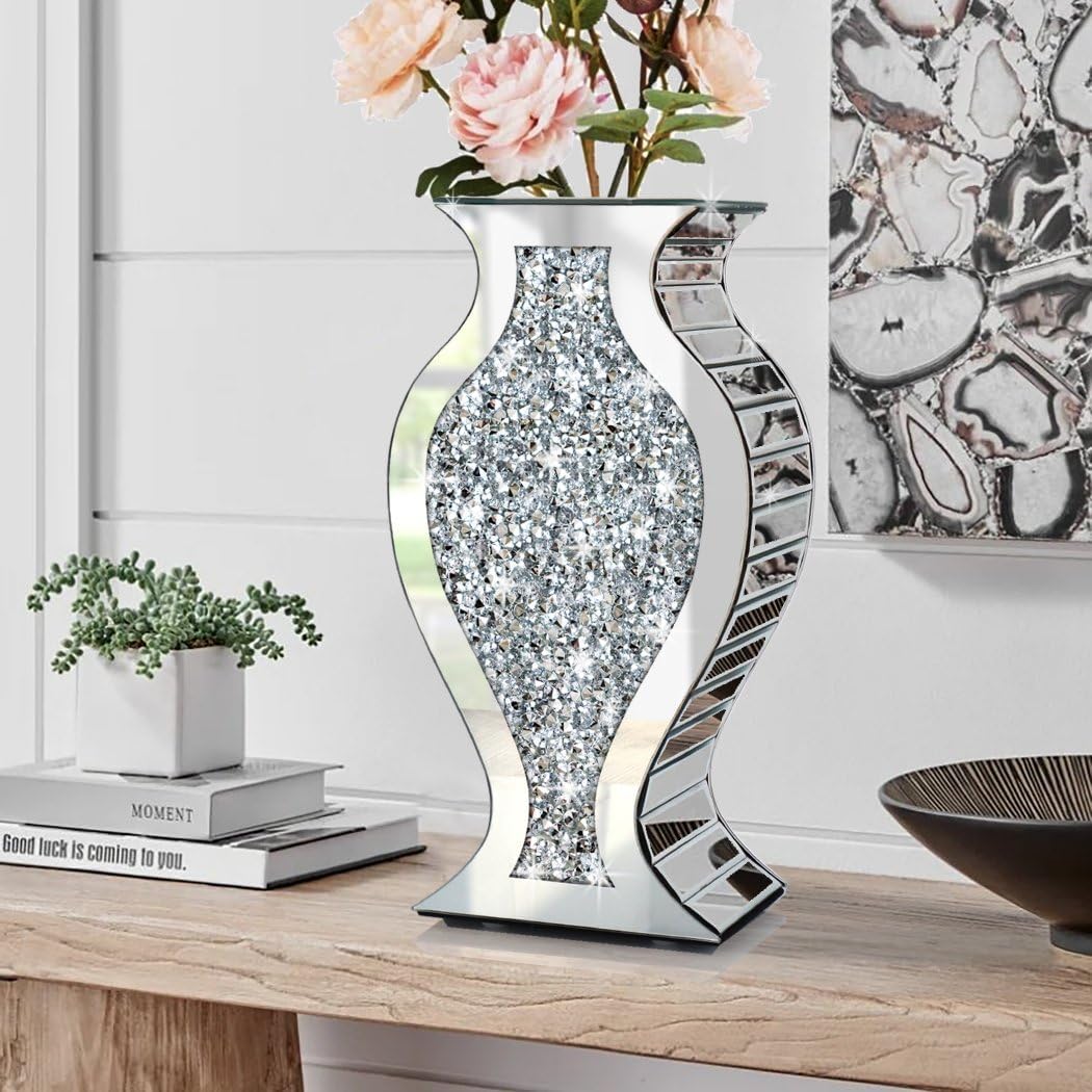 Beautiful Vase ,Suitable for various occasions, dresser table, desk, Modern and meaningful decorative design perfect for home décor or office display, wedding ceremony, birthday part, festival greetings etc…, these finest crushed diamonds will catch the light and sparkle in your house all day long. Upscale elegant diamond crushed mirror flower vase.