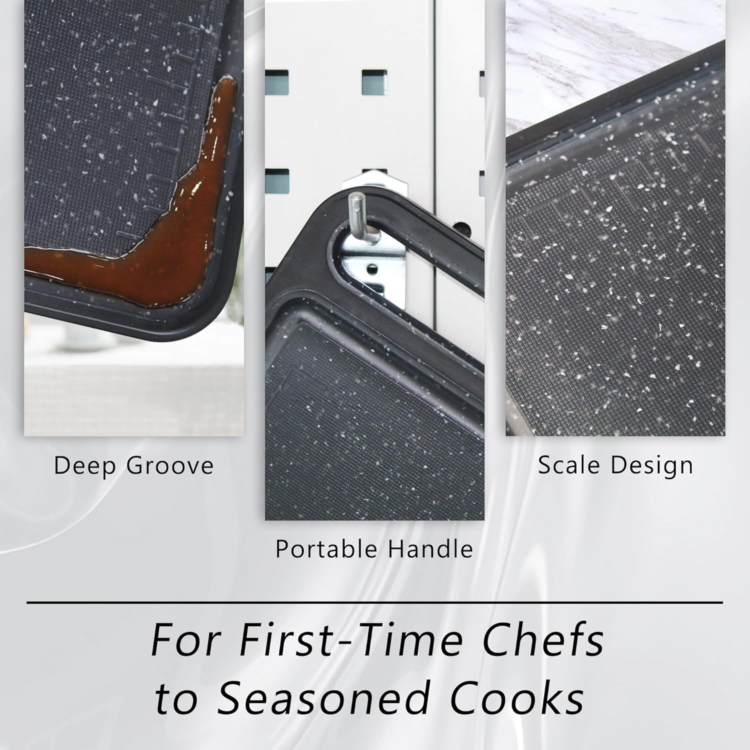 NON-TOXIC CUTTING BOARD: Cutting Boards for Kitchen are made of food-grade, non-toxic materials that are BPA-free, ensuring a safe and healthy cooking environment, so you can feel confident when preparing your favorite dishes.