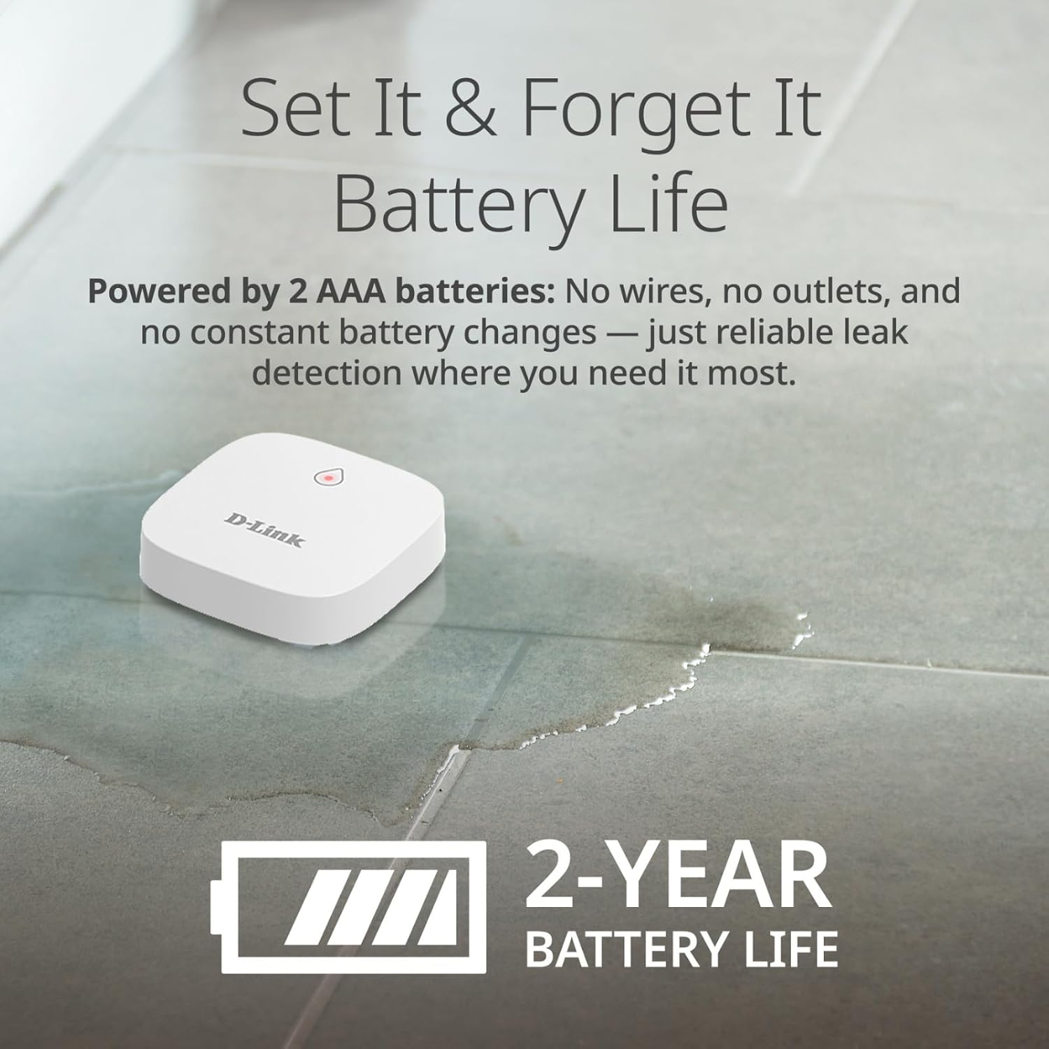 Expand Your Water Leak Protection. Monitor up to 17 locations by adding additional Remote Water Leak Sensing Pods (SW-A2) to your D-Link Wi-Fi Water Leak Sensor Kit (SW-A11KT) (sold separately). Each compact, battery-powered sensor wirelessly links to the main unit and helps you monitor additional locations around your home. Whether it’s the laundry room, under the sink, in the basement, or behind your water heater, these pods are built to go where leaks often strike. With water-resistant design and long-range Sub-GHz connectivity, they stay connected even in hard-to-reach spots — no outlet required. Powered by two AAA batteries, each compact sensor delivers up to 2 years of worry-free protection. No wires, no outlets, and no constant battery changes — just reliable leak detection where you need it most. A burst pipe or leaky water heater in the basement, a drip under the sink, or an overflowing washer. Help safeguard your home with the Wi-Fi Water Leak Sensor Kit (SW-A11KT – sold separately), your 24/7 watchdog that helps alerts you when a leak is detected. Set it up in minutes for whole-home coverage and enjoy peace of mind knowing it can help you catch small leaks before they become expensive disasters.