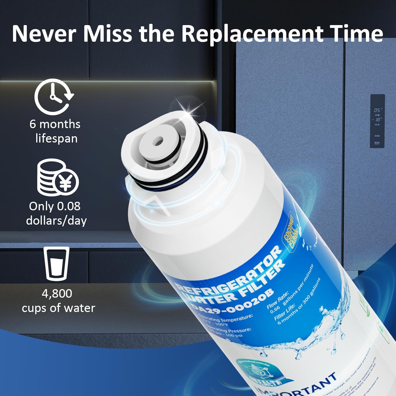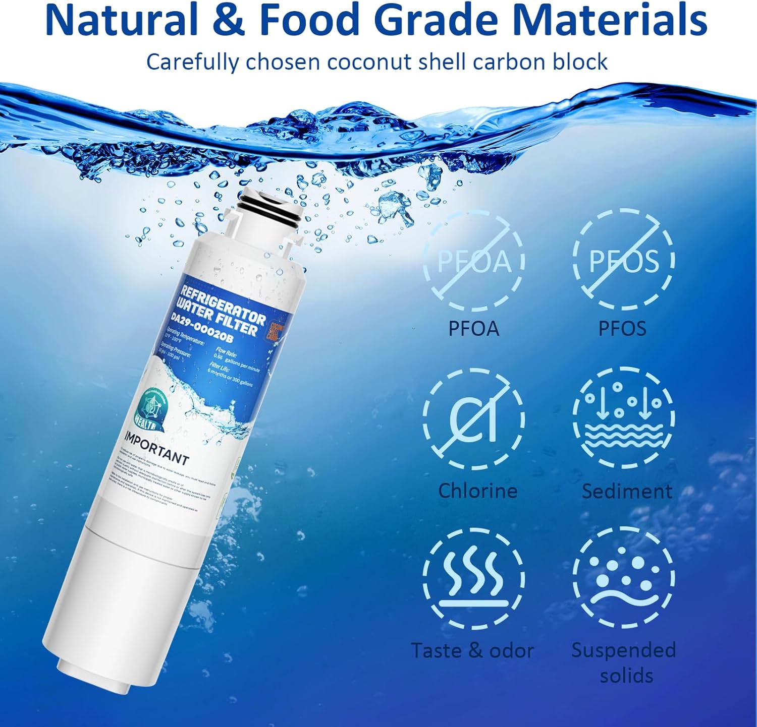 Premium Filtering Material – The WSKFDTI DA29-00020B Water Filter selected BPA-free and food-grade filter housing and features premium coconut shell carbon blocks with 2x larger specific surface area and a 0.5 micron outer layer for much more effective filtration. This replacement for Samsung Water Filter HAF-CIN EXP effectively against various materials