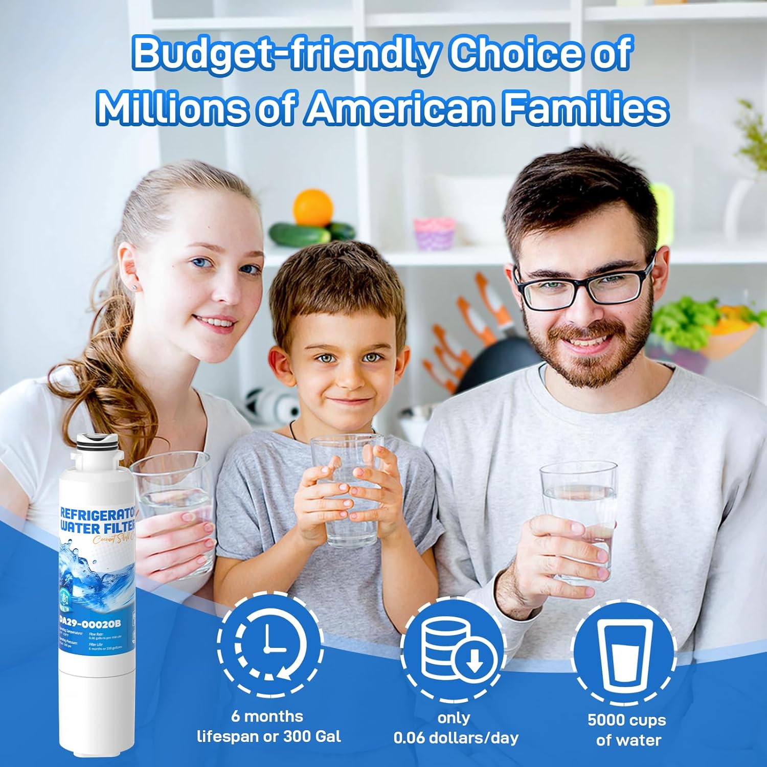 [EFFICIENT FILTRATION CAPACITY]: The water filter replacement reduces substances from your water including 97% of Chlorine, taste, THM, VOCs, Particles, and all other major impurities, significantly improving the taste of drinking water to provide pure-tasting water, while retaining minerals beneficial to you and your family.