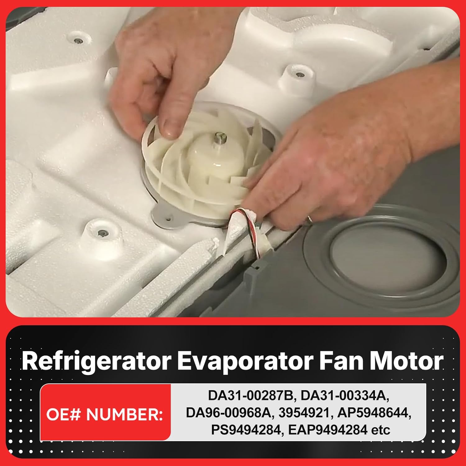 Replace part number ===== This DA31-00287B Fan Motor directly replaces DA31-00334C, DA31-00334A, DA96-00968A, AP6803162, 3954921, AP5948644, PS9494284, EAP9494284 etc. Package include: 1 * New Refrigerator Evaporator Fan Motor.