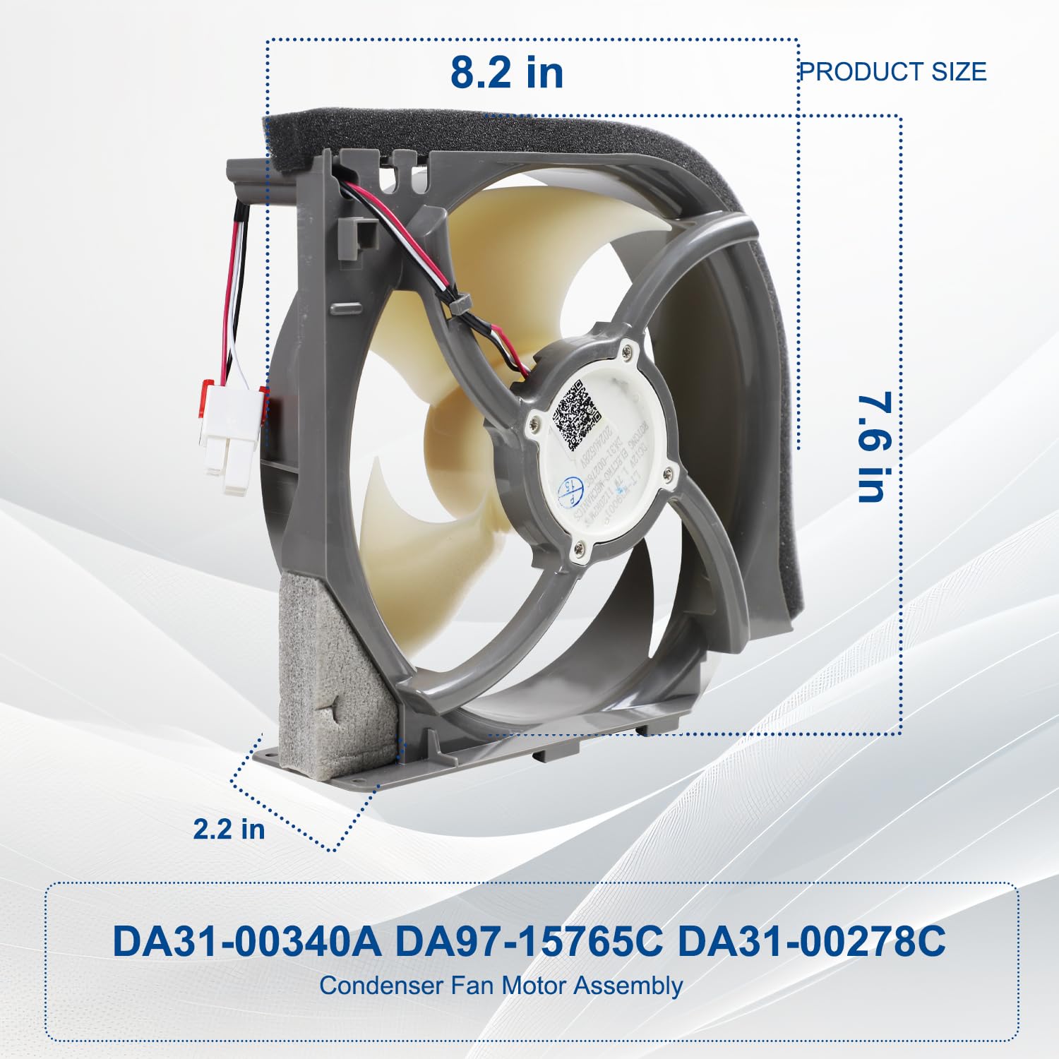 DA97-15765C DA31-00278C Condenser Fan Motor Compatible with Samsung Refrigerator, Replaces DA31-00278C DA31-00340A DA97-12842A DA97-12842B DA97-15765A AP6001015 PS11733650 EAP11733650 RMF002ASSA