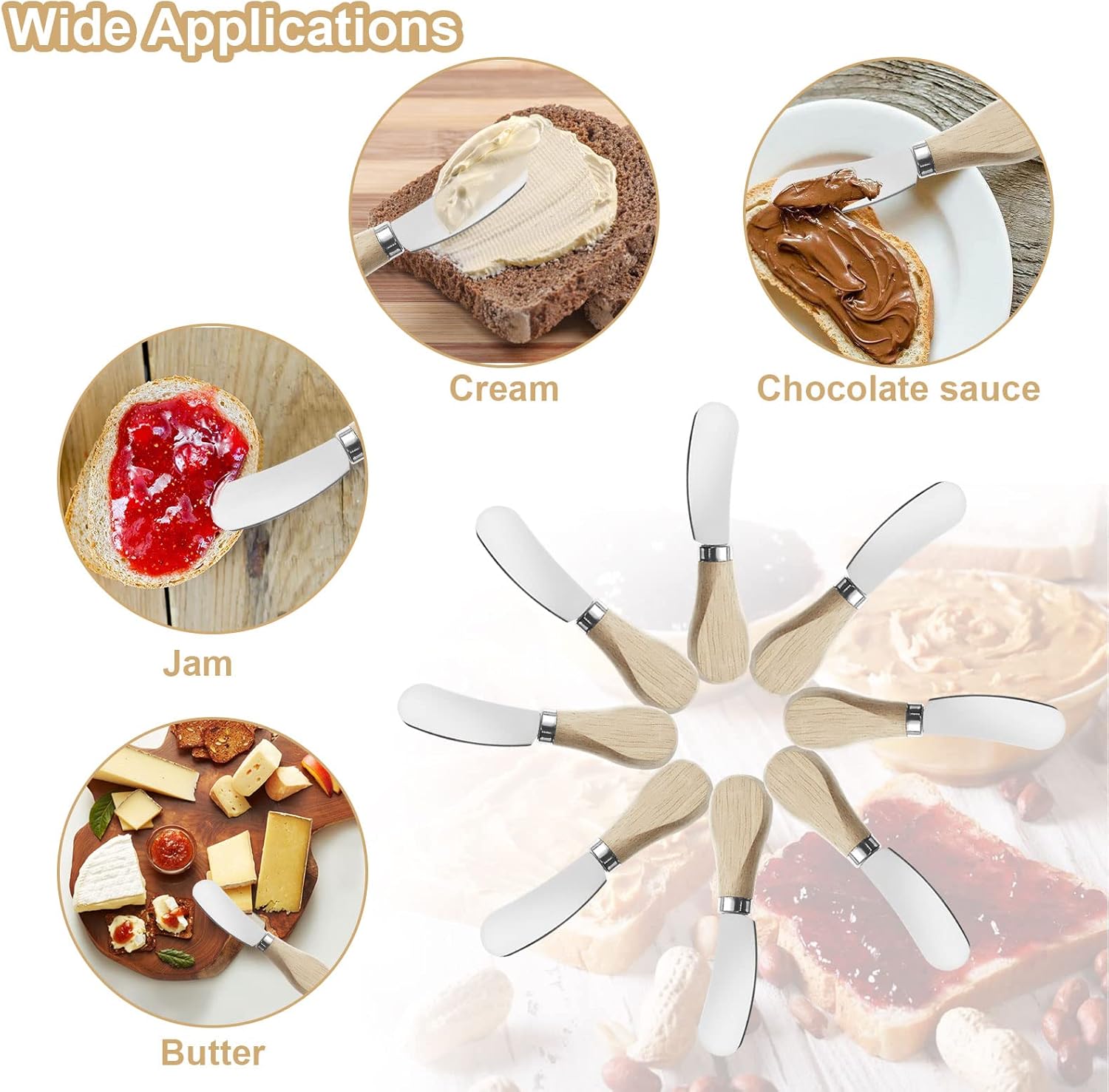 16 Pieces Cheese Spreader Cheese Butter Spreader, Stainless Steel Butter Spreader Knives with Bamboo Handle Sandwich Cream Cheese Cake Condiment Knife Set, 4.8 Inch