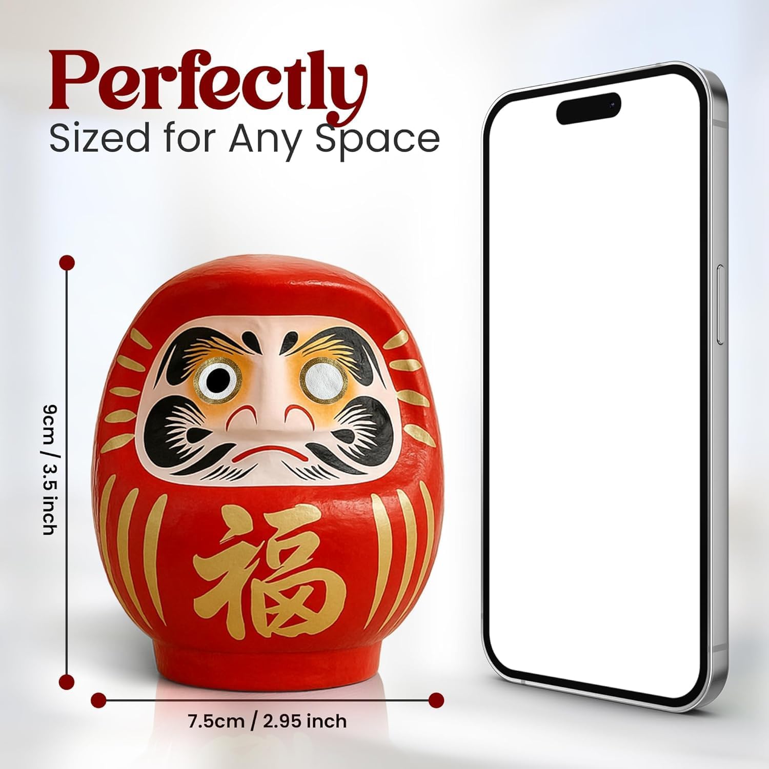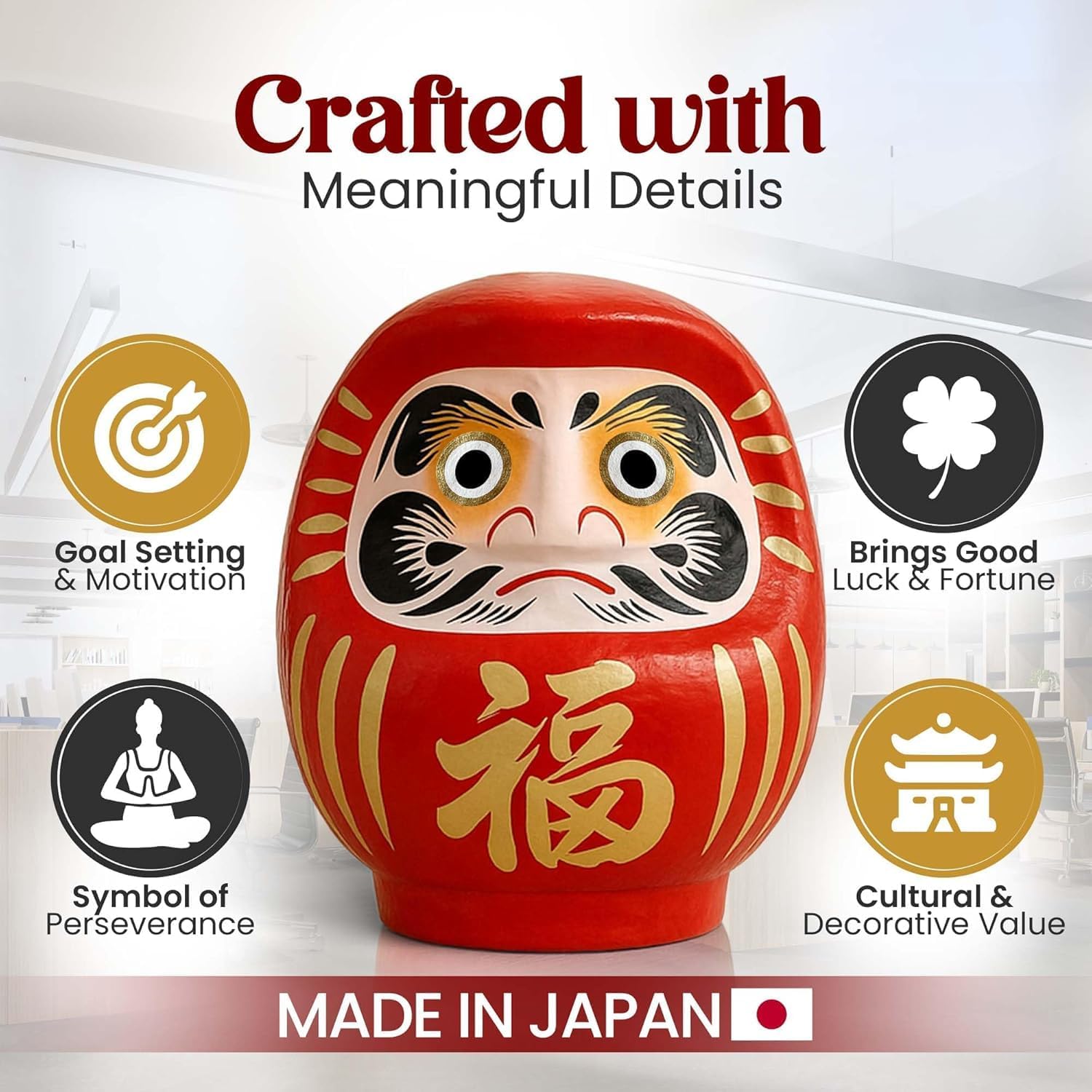 🇯🇵 Authentic Japanese Craftsmanship – Handmade in Japan Handmade in Japan from traditional papier-mâché, each Daruma is a cultural treasure symbolising dedication and artistry. A premium Japanese lucky charm that adds meaningful décor to any home, workspace or meditation area.