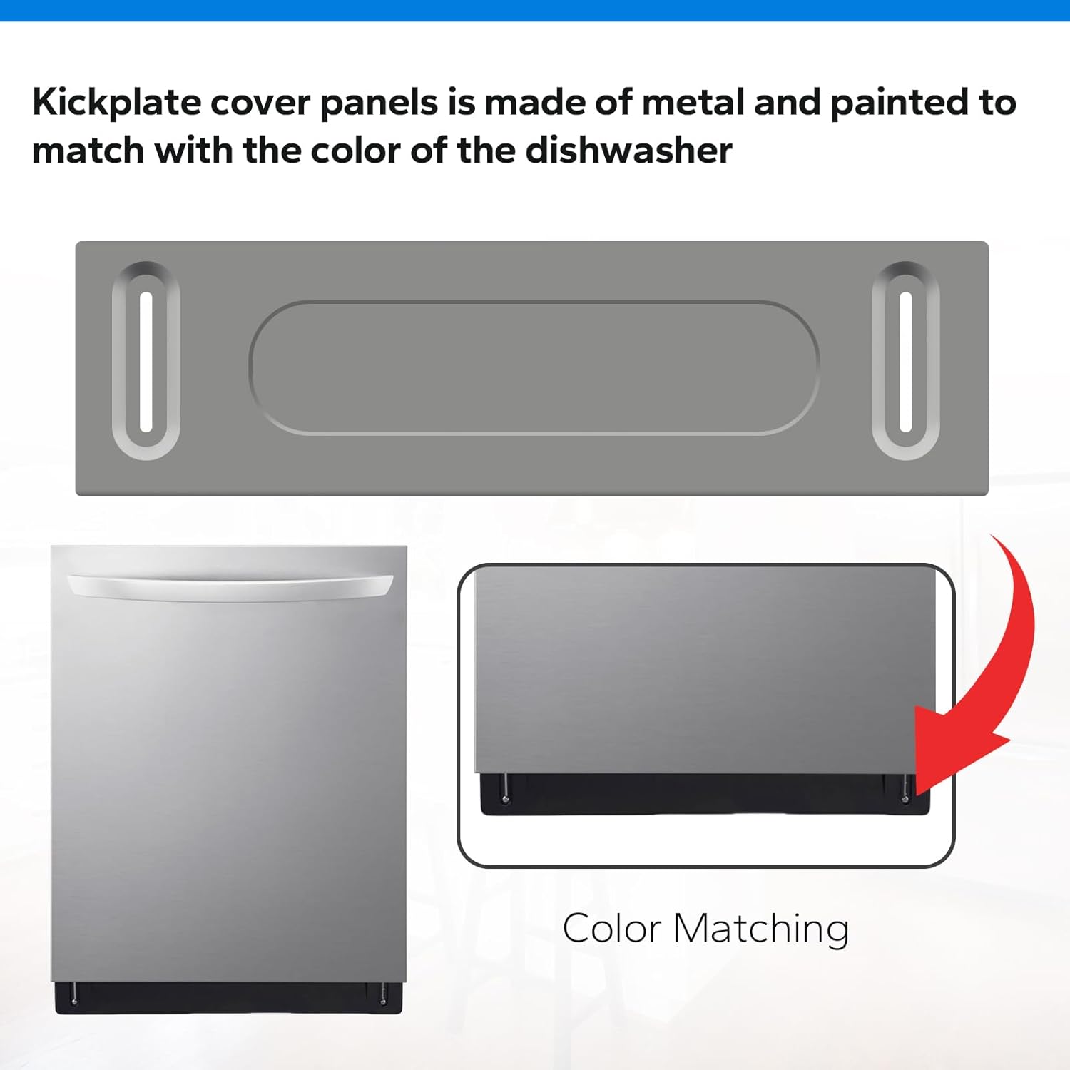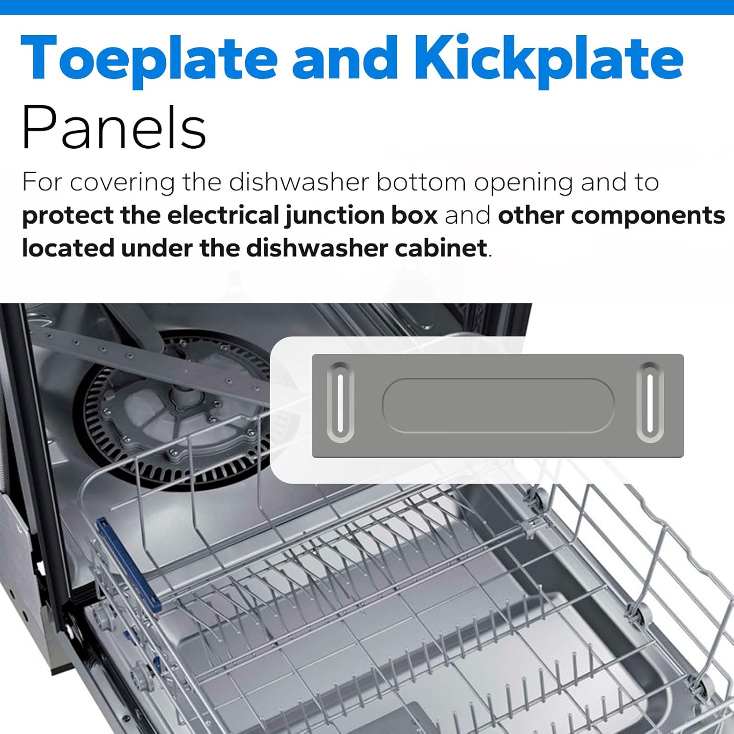 【High Efficiency】Toeplate Kickplate panels, also known as access panels, are made for covering the dishwasher bottom opening and to protect the electrical junction box and other components located under the dishwasher cabinet, slotted holes help to hide the legs and minor leveling issues