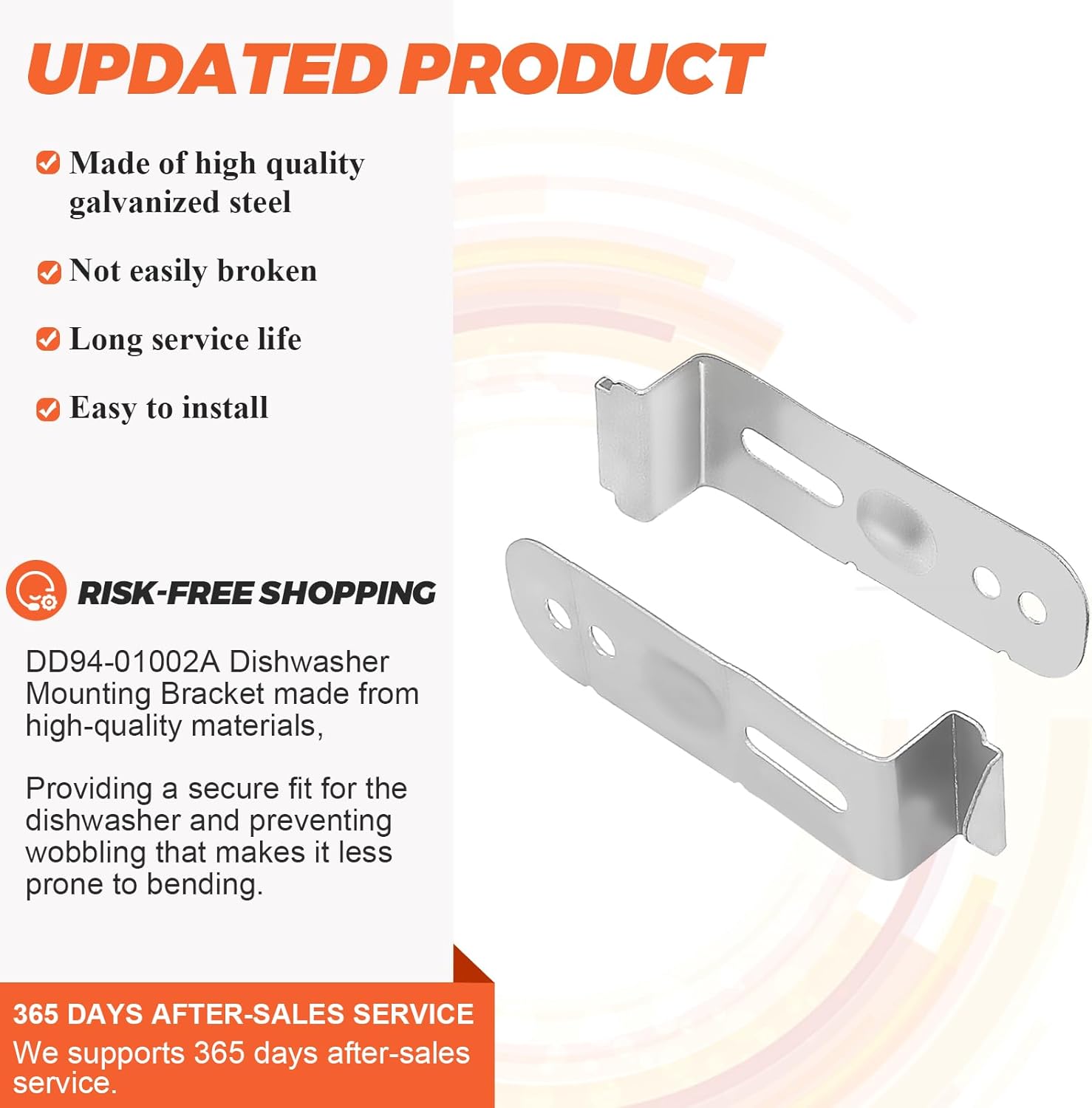 【DD94-01002A DISHWASHER INSTALLATION KIT】- The DD94-01002A Dishwasher Assembly-mounting Kit is used to secure the dishwasher in the kitchen cabinet. It prevents the dishwasher from tipping over if you slide it off the shelf. To keep your kitchen safe, replace any piece of the assembly kit if it is broken or missing. The dd94-01002a dishwasher installation bracket is made of HIGH QUALITY material, making the kit stronger, less prone to wear and tear, less prone to bending, better able to withstand the weight of the dishwasher, without the gravity of the dishwasher making the rack fall off the cabinet and causing the dishwasher to come loose and fall off. It can be easily replaced