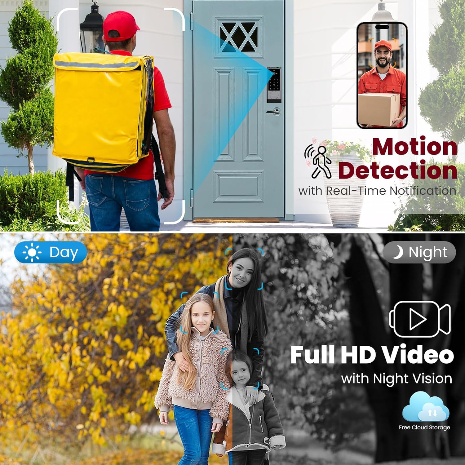 【Enhanced Security and Monitoring】 Keep an eye on your doorstep with HD camera, and communicate easily using two-way audio. Automatic recording ensures you never miss a moment. Benefit from features like auto-lock, privacy mode, low battery alerts, and an anti-peeping keypad for comprehensive home security.