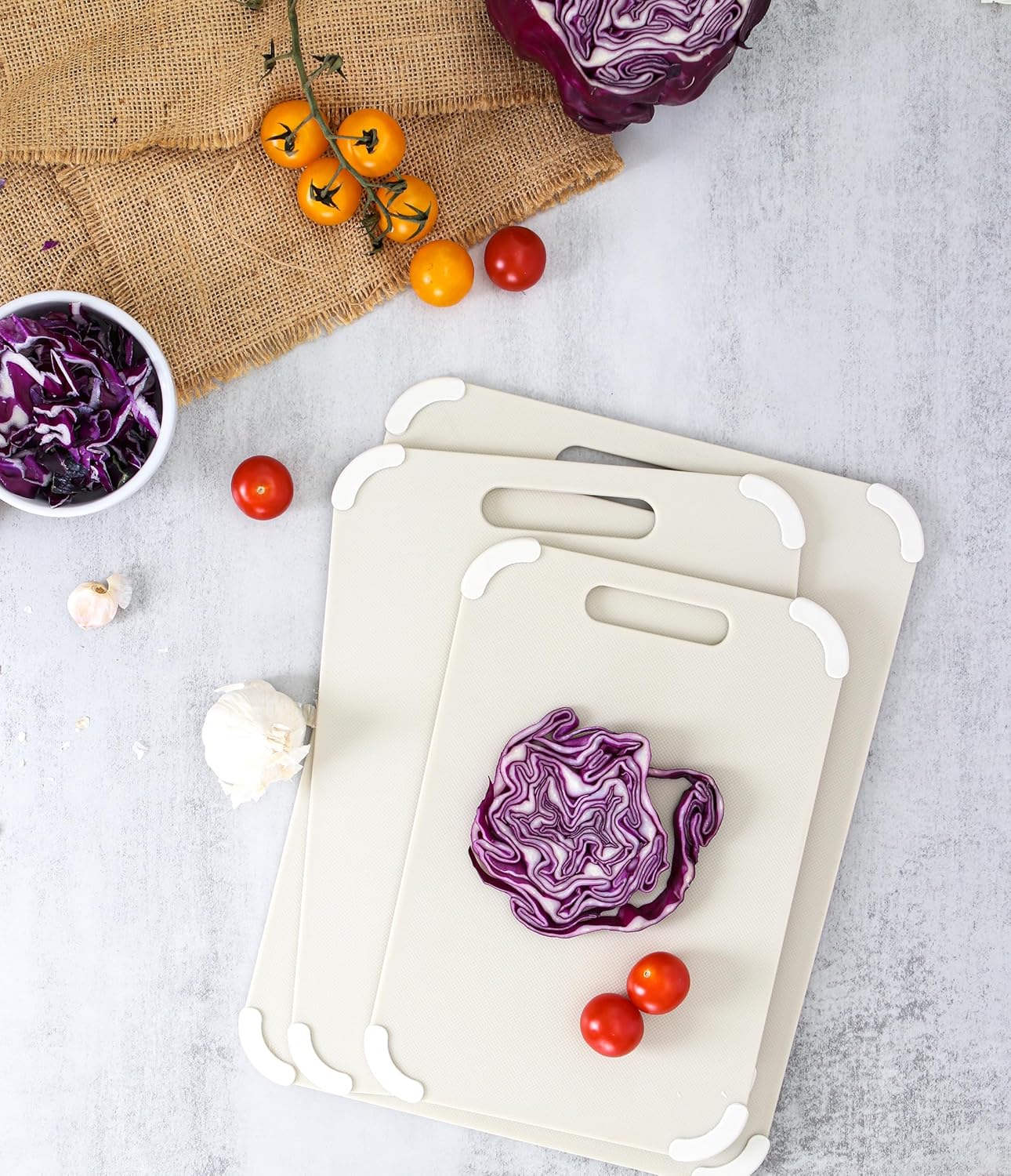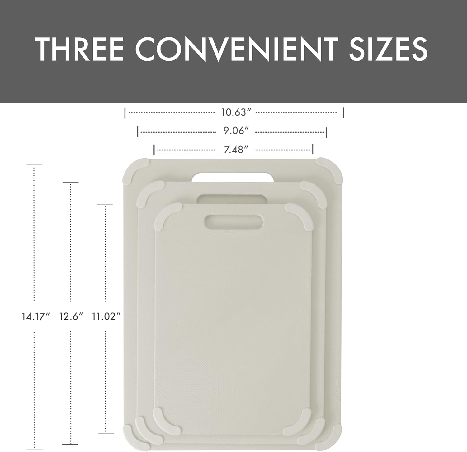 3 Essential Sizes for All Kitchen Tasks: Includes boards in 14.17″ x 10.63″, 12.6″ x 9.06″, and 11.02″ x 7.48″, ideal for cutting meat, veggies, fruit, and more.