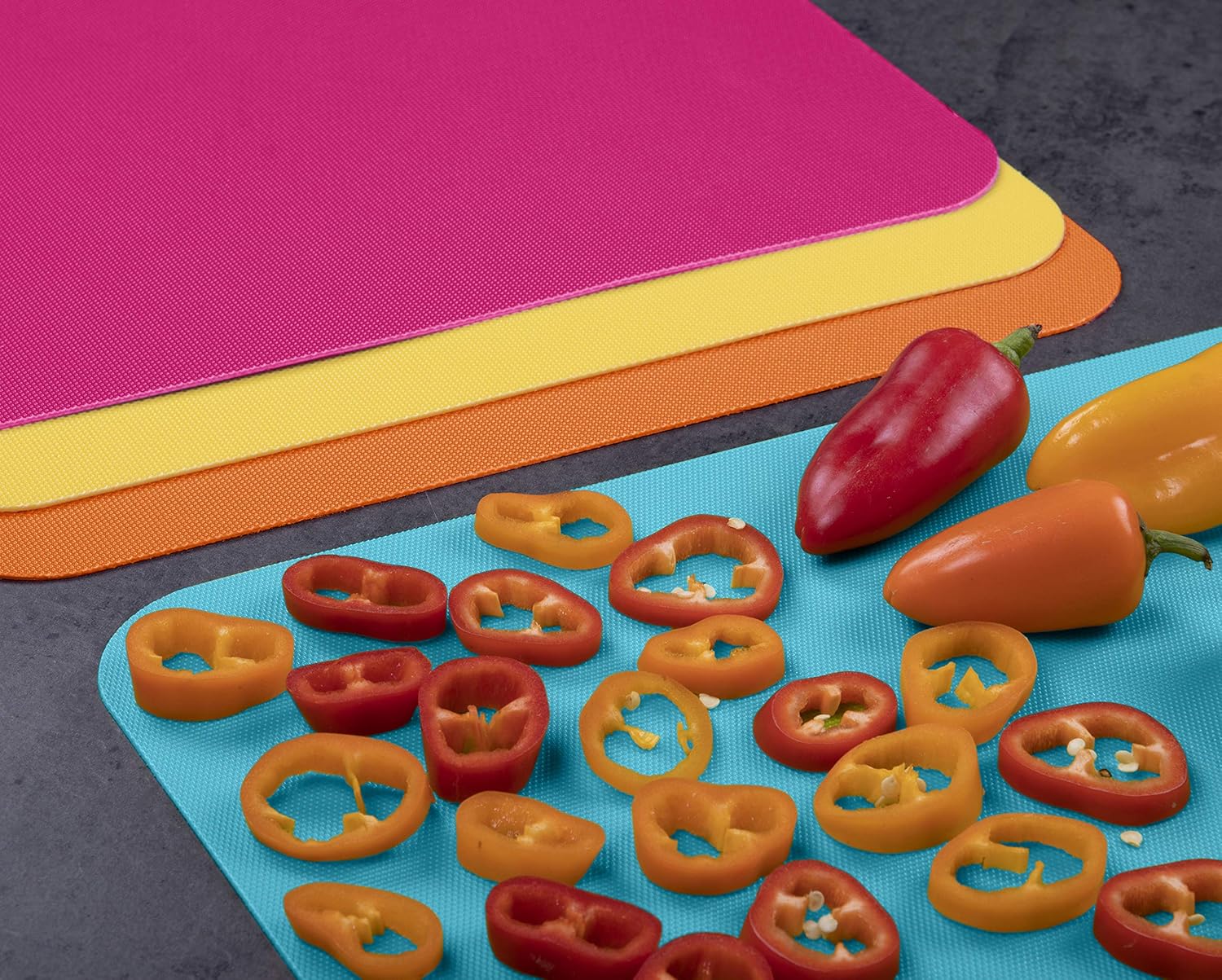 INNOVATIVE CUTTING MATS: These cutting boards feature an innovative, lightweight, and flexible design. They are plastic boards, non-porous and non-absorbent, ensuring easy cleanup and hygiene.