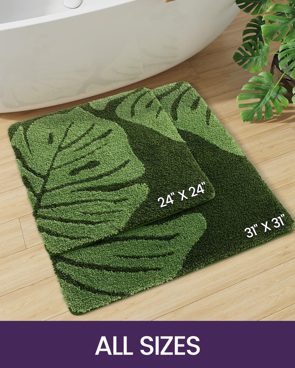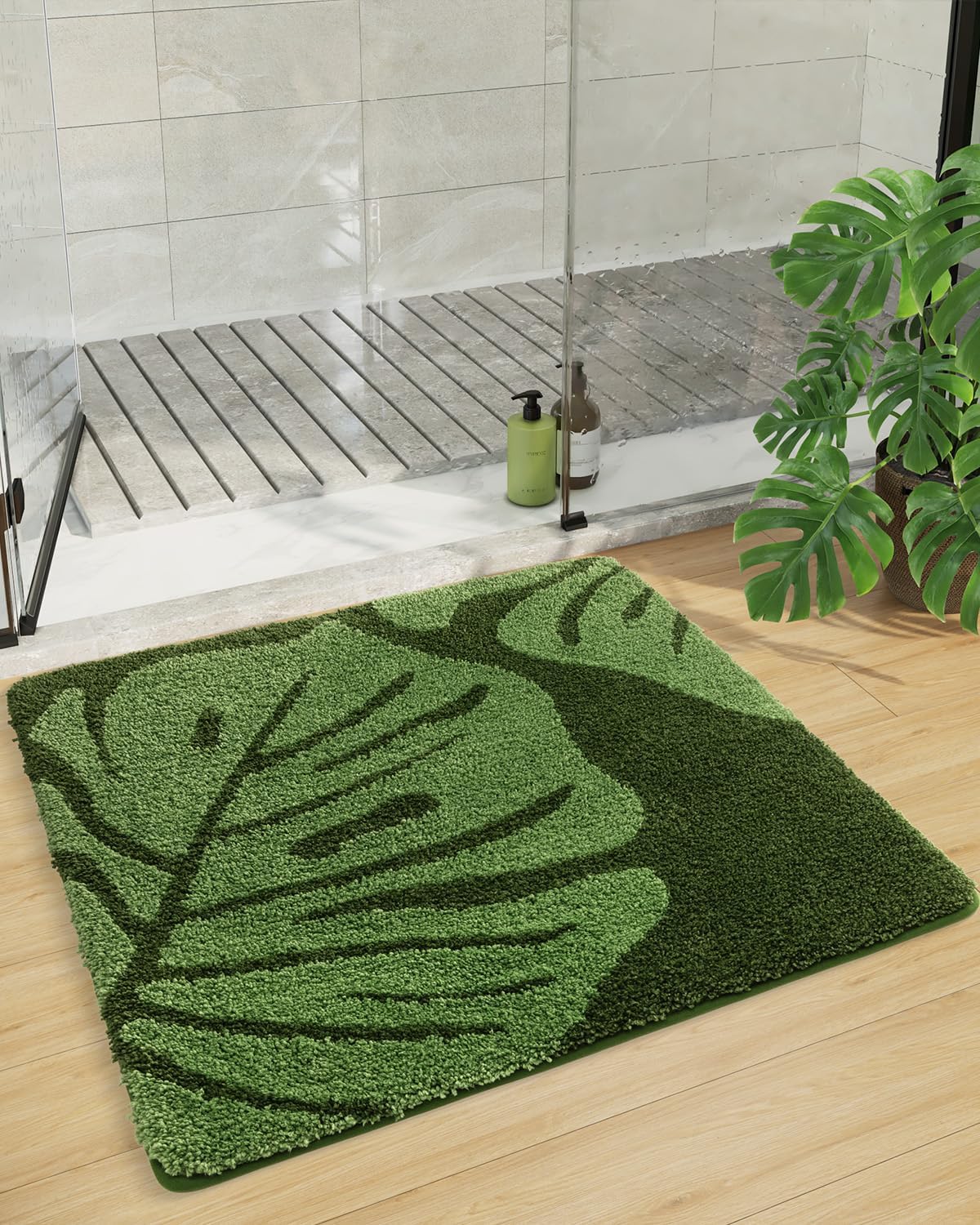 Plant-Themed Design: DEXI square bath mats for bathroom immerse your home in the charm of nature with green monstera leaf pattern, which lends a beautiful decor element to your bathroom, shower room, laundry room, kitchen
