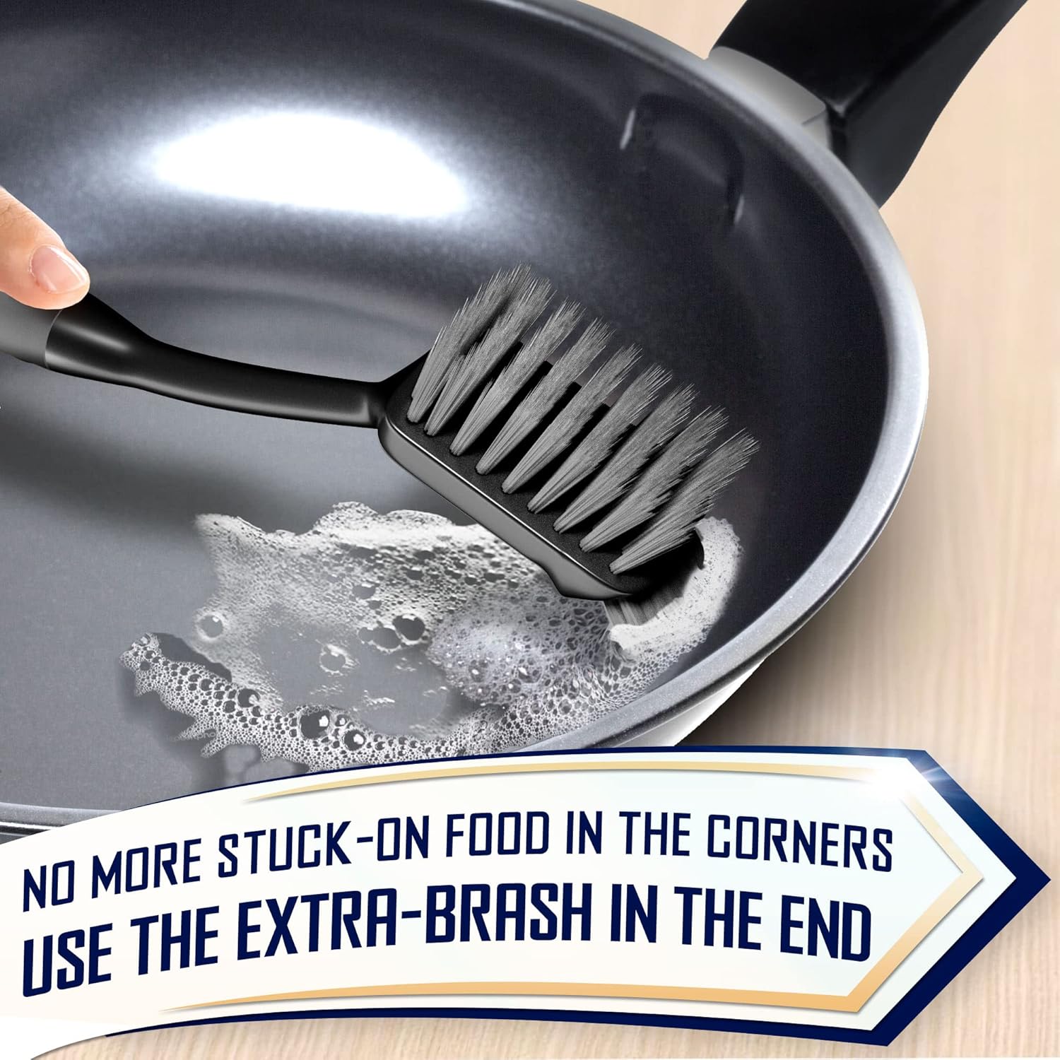 Heavy-duty bristles – dense and thick bristles easily get off stubborn stuck-on food bits from your pans, pots, and more. Do not bend, deform, or fall out after the week of use.