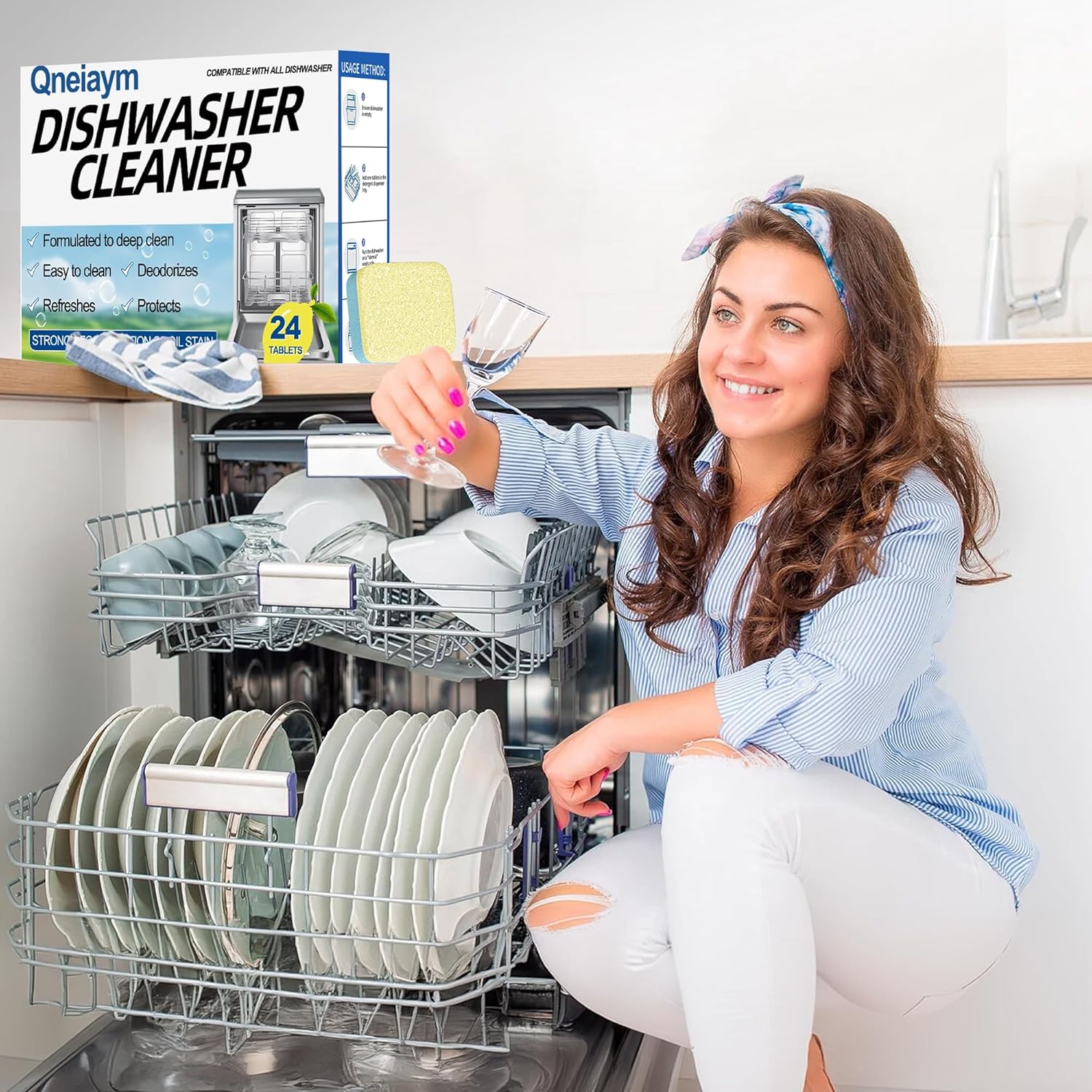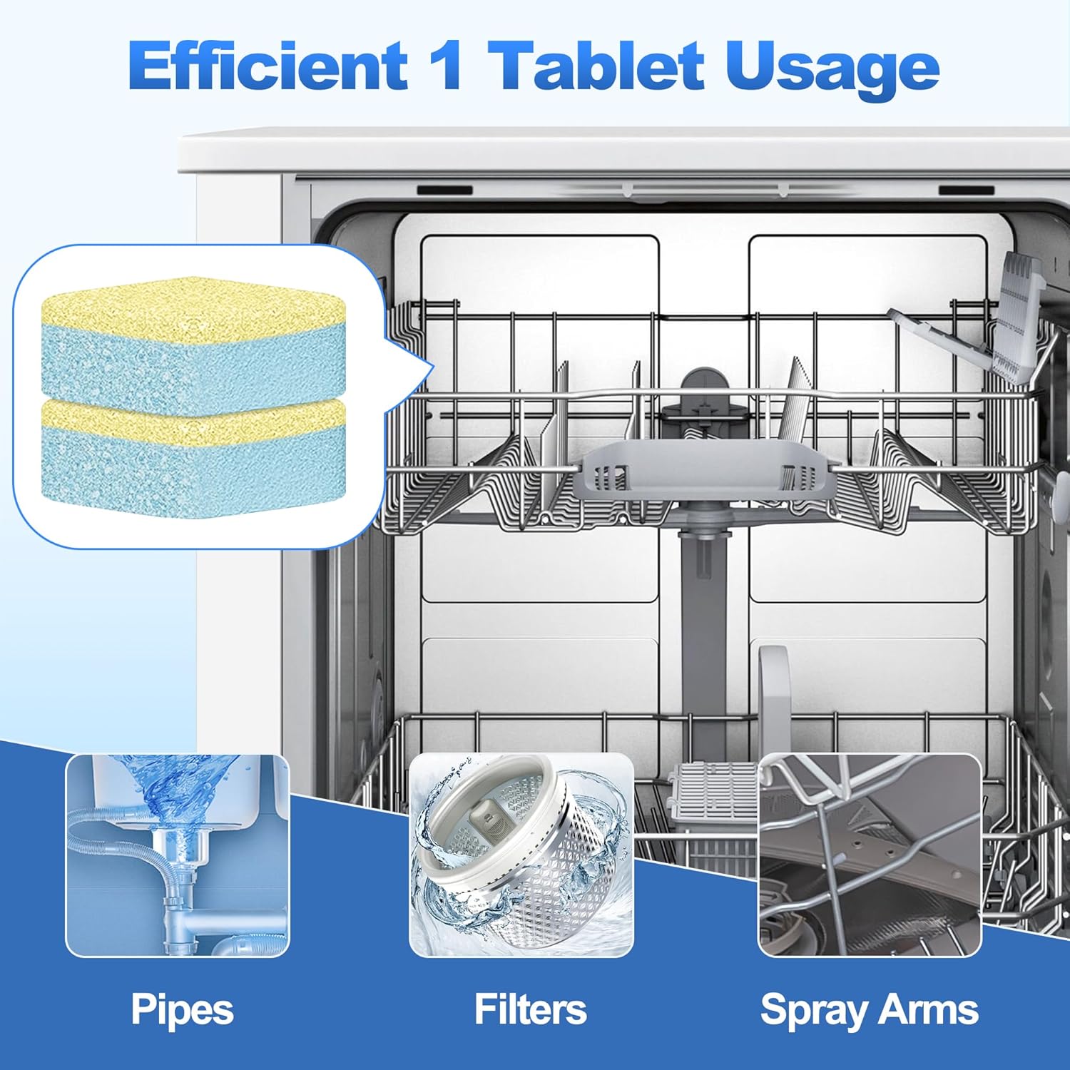 Dishwasher Cleaner and Deodorizer Tablets,Deep Cleaner and Descaler for Dish Washer Machine,Heavy Duty,Natural Odor and Smell Remover, Limescale, Calcium, Grease,12 Month Supply (24 Tablets)