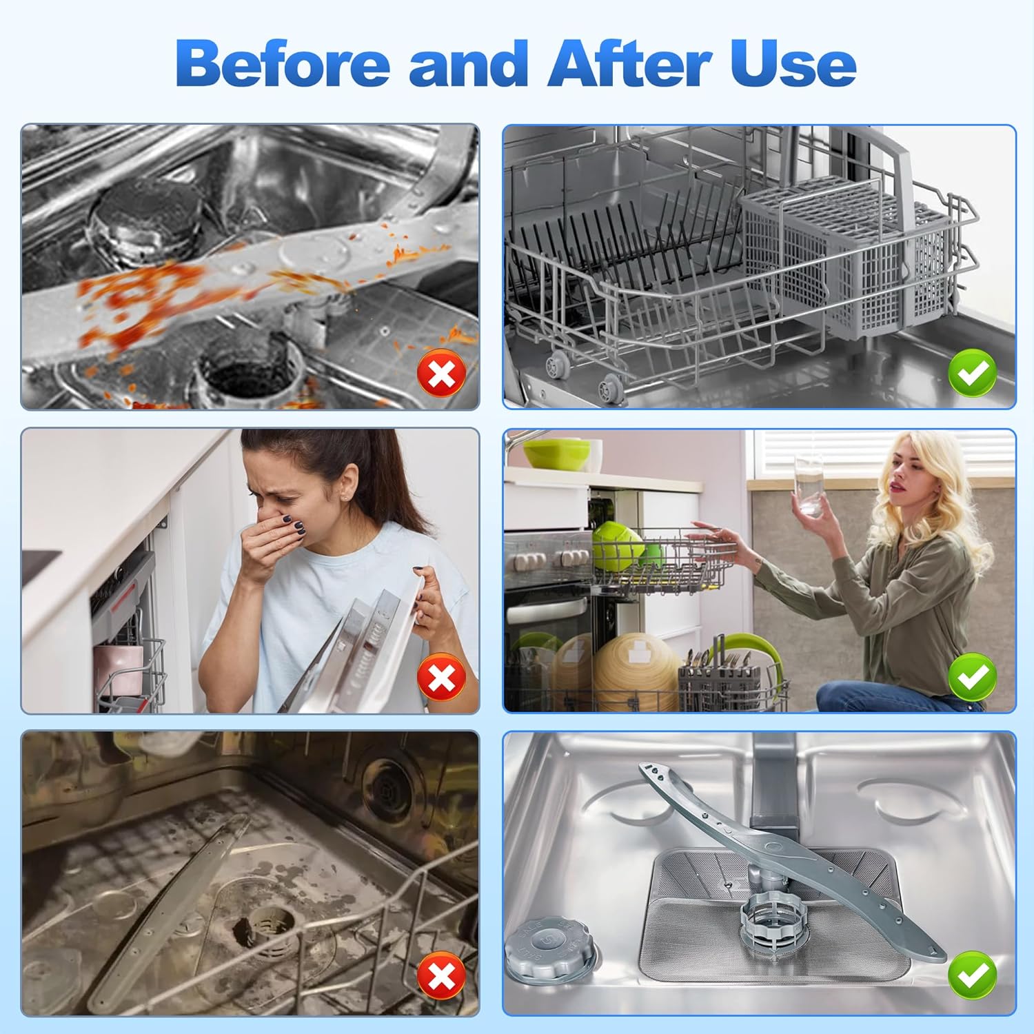 👍Powerful Cleaning Performance: Our dishwasher cleaner effectively removes grease, grime, limescale, buildup, and odor causing residue, helps enhance your dishwasher’s performance and lifespan, make your dish washing appliance shine. Removes gunk spot, also helps prevent clog and clear out foam in tubes, jet and filter area.