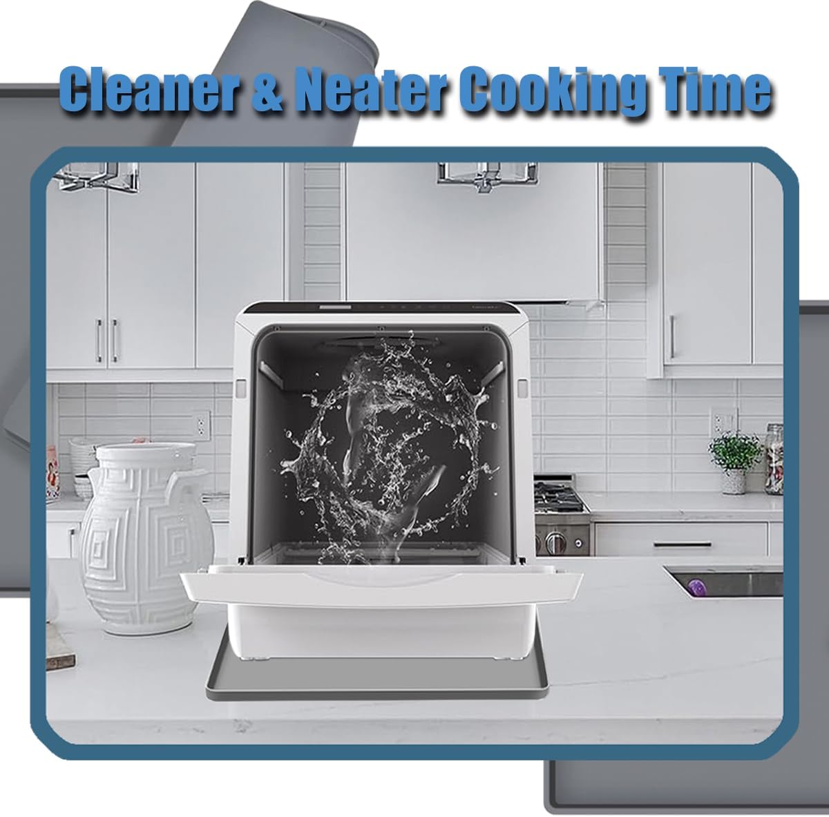 Large Size Design: Our mini dishwasher mat measures 23.6”x19.7” and is designed for use with a variety of flooring or tile materials. The high density, non-slip material effectively protects table tops and floors