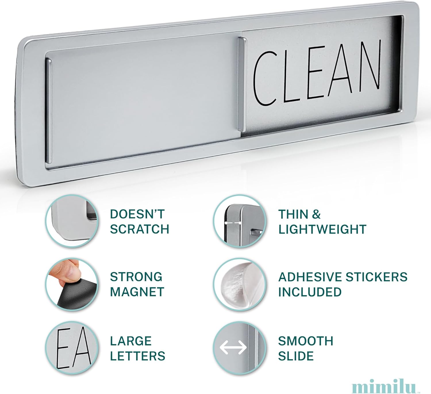 BUILT TO WITHSTAND DAILY USE 🟢 Your MIMILU Clean Dirty Sign For Dishwashers is durable and made to last. The sign and ‘clean dirty’ text is water-proof and durable. The slider is designed to be smooth, sturdy, and long lasting. Size 7x 2 x 0.3