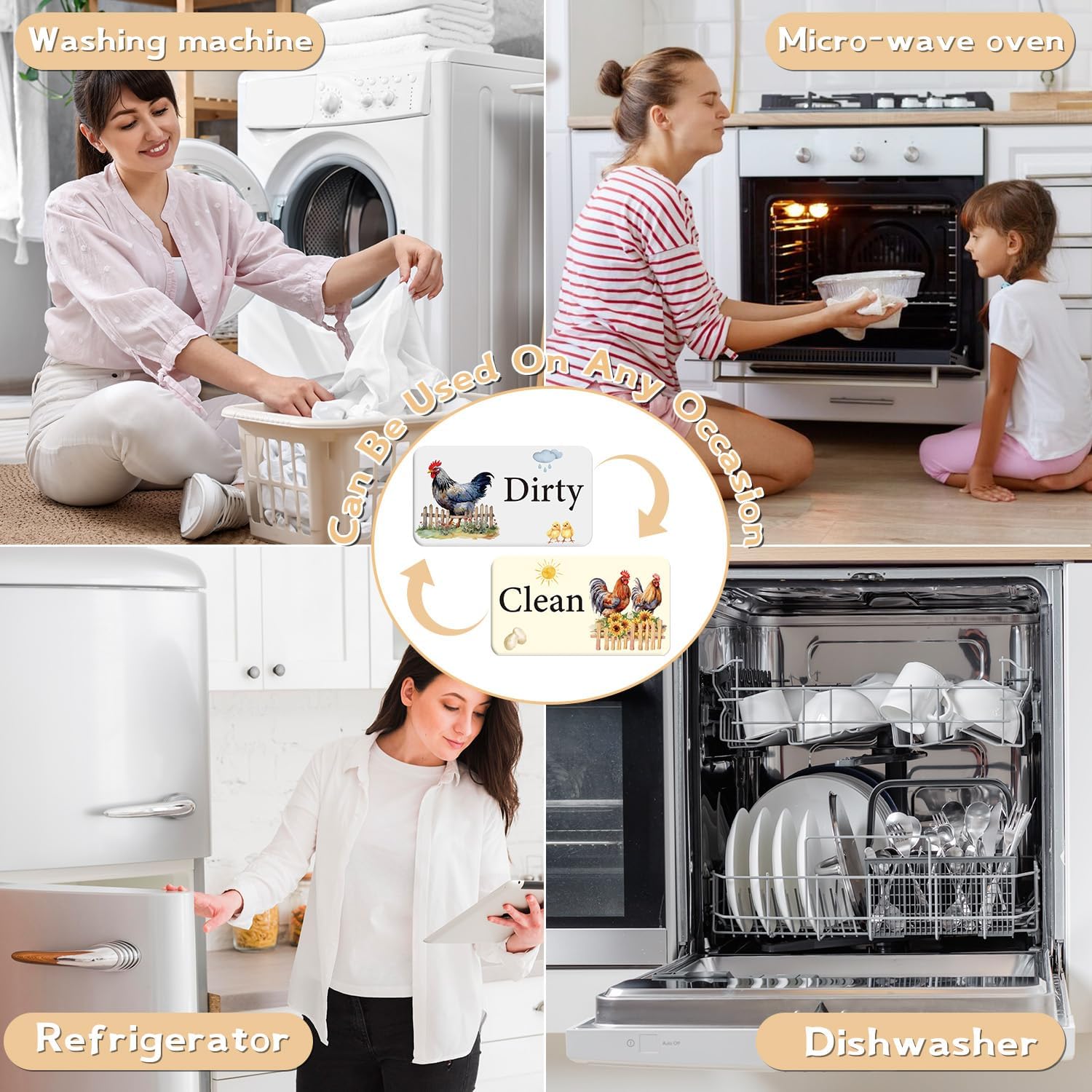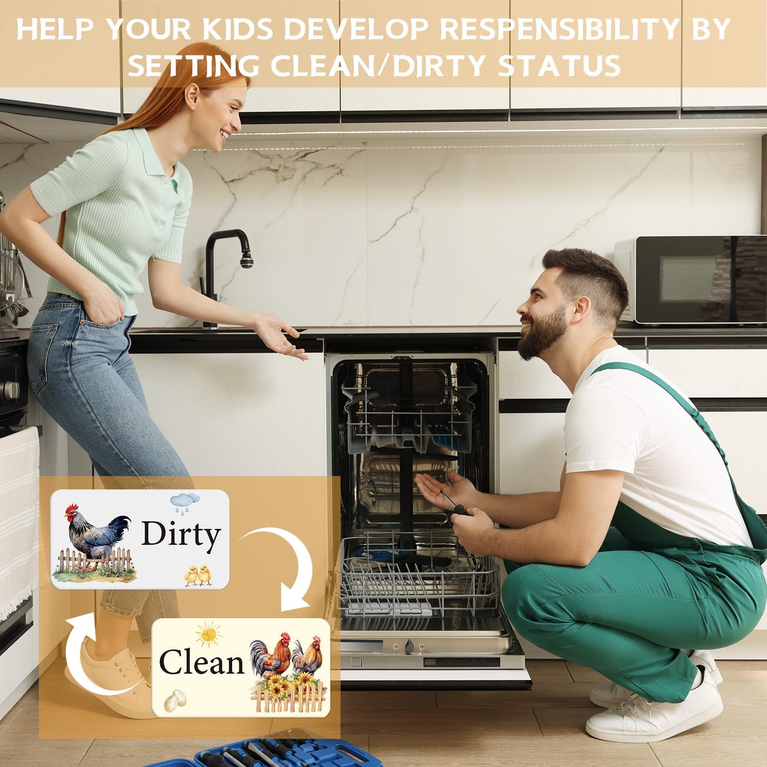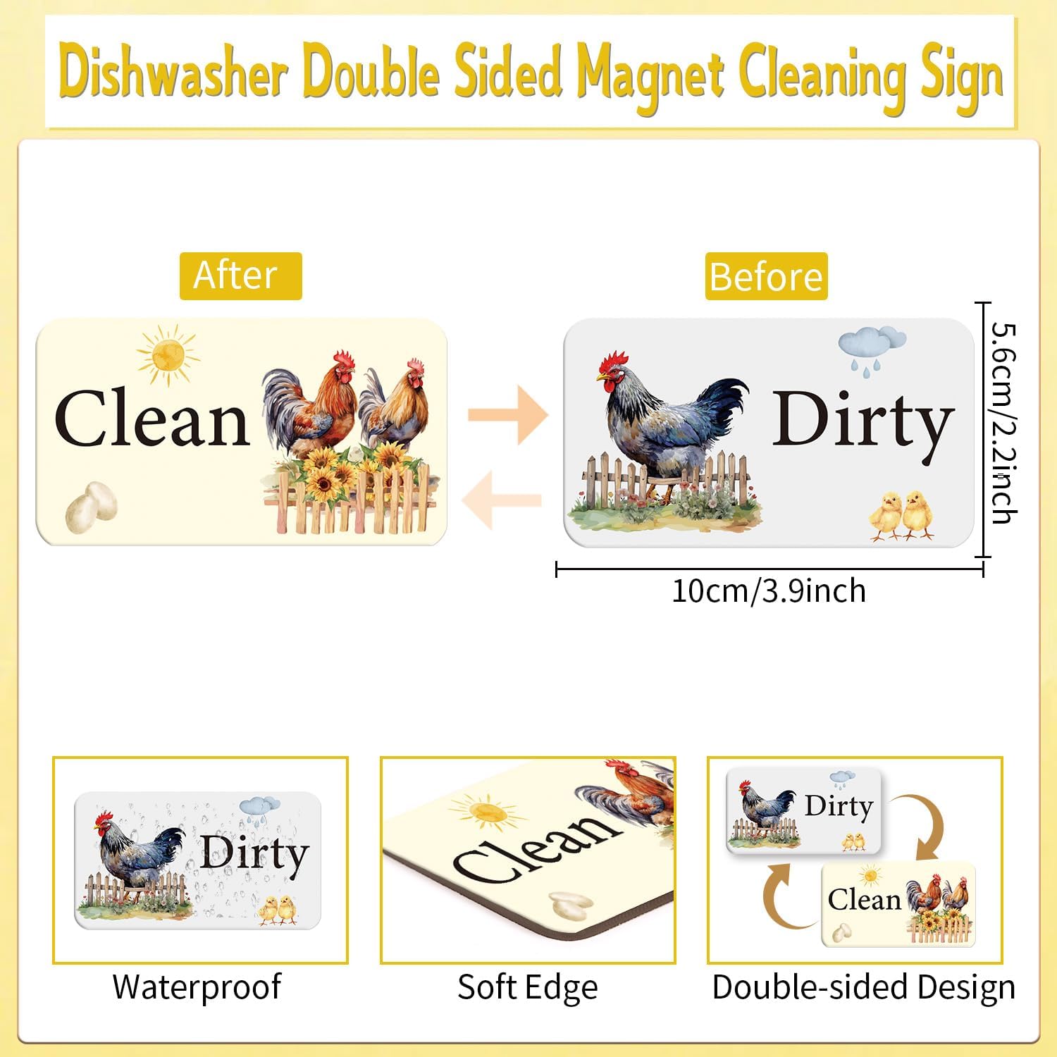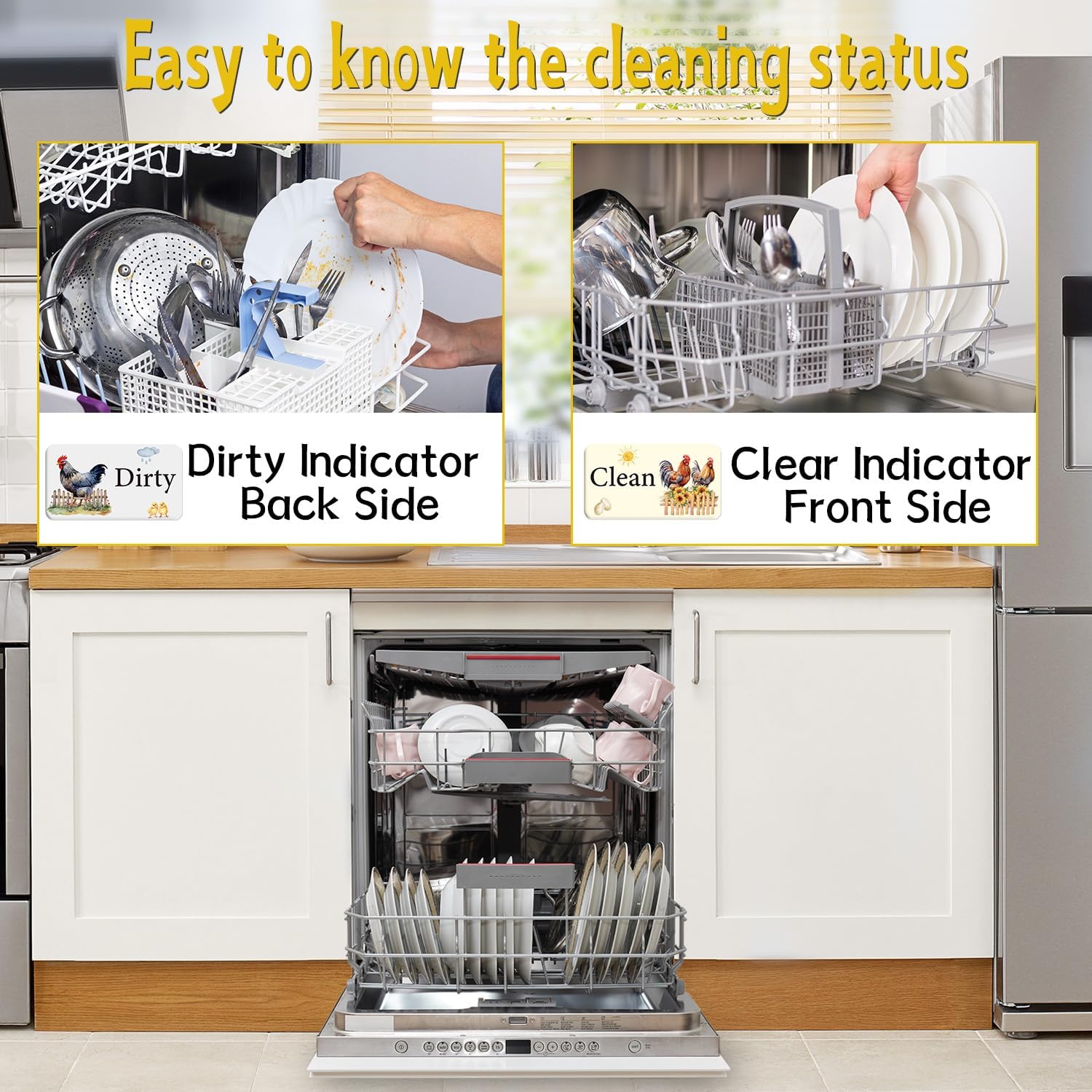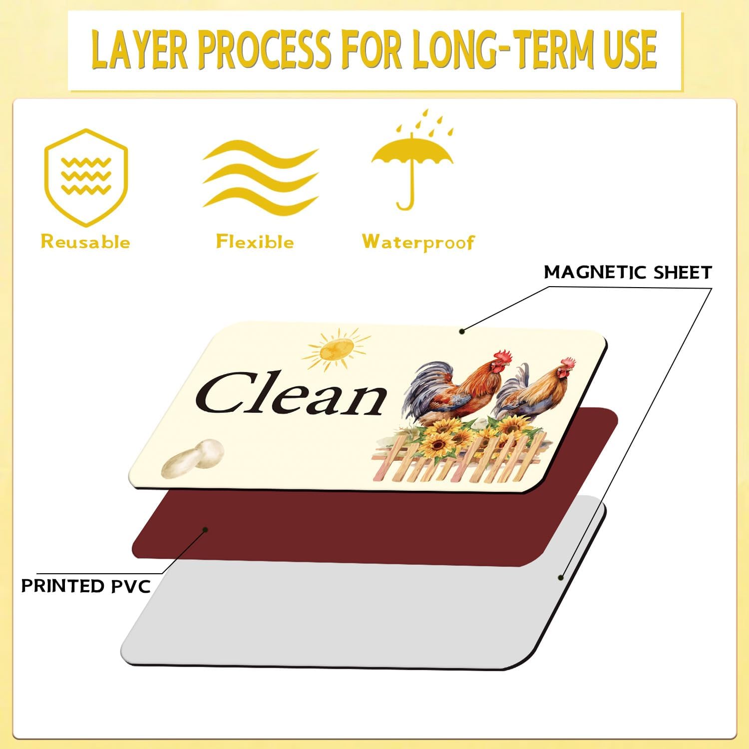 【Cute Design】Our magnetic clean dirty sign has a cute and stylish appearance, including chickens, sunflowers, flowers and other elements, which are vivid and interesting, adding a touch of personality and fashion to your kitchen decoration. There is a “clean” yellow background on one side of the magnet and a “dirty” gray background on the other side. The conspicuous pattern allows you to read easily.