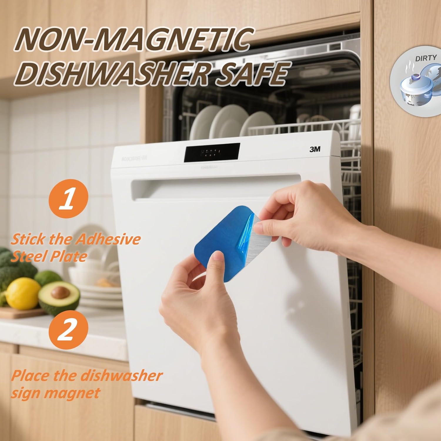 Suitable for all dishwashers: The clean dirty sign come with an adhesive steel plate that can be installed on any material dishwasher surface. Whether your dishwasher surface is metal or non-metal, you can use it