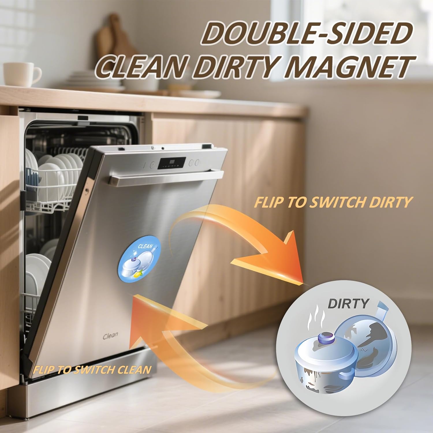 Family-friendly design: This clean dirty magnet clearly indicates the clean/dirty status of dishes, helping to keep the kitchen tidy. Every family member can easily understand the status of dishes, reduce unnecessary inquiries, and improve kitchen efficiency