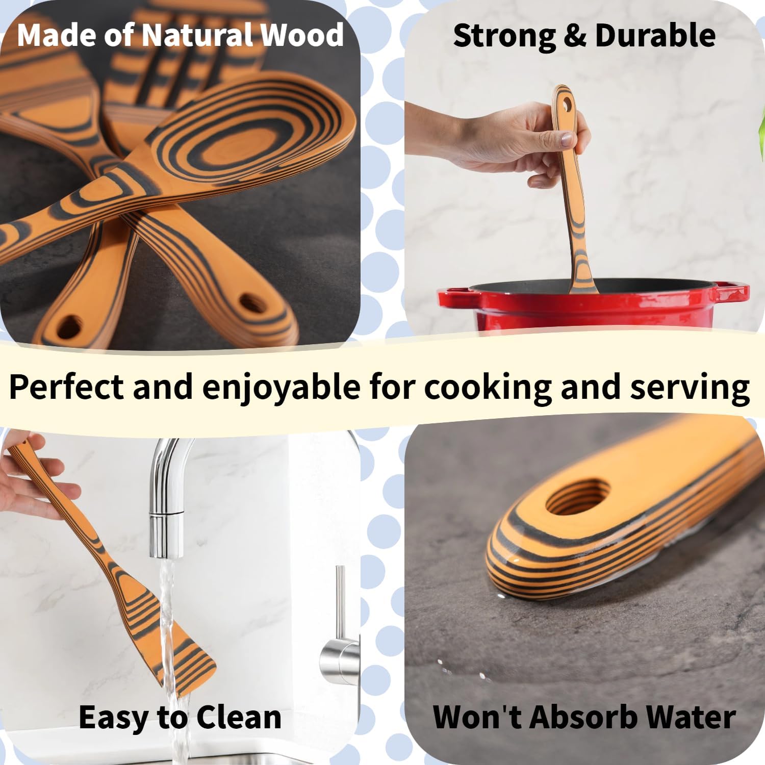 【🌲Ergonomic Design for Ultimate Comfort】:*Cook with ease, every time.* The spoon’s curved handles fits naturally in your palm, and the friendly hanging holes make it convenient in daily life. You can fulfill all the high heat sauteing, baking, mixing, flipping, and serving. The laminated technique helps to add a unique and stylish touch to your home and kitchen with the modern look.