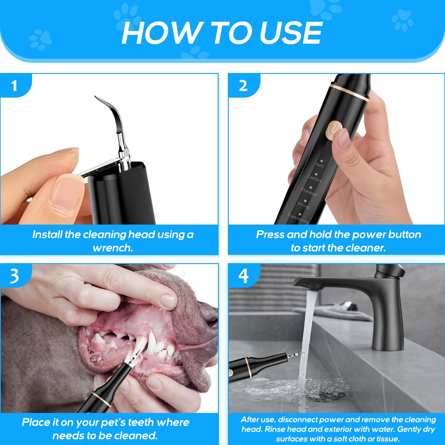 [Advanced Cleaning Technology]: This dog tooth plaque remover adopts technology, which can effectively and quickly remove dental plaque, calculus, tartar, and stains. The vibration frequency is up to 42 kHz, and it reaches 2,000,000 Vibrations/Minute, which can reduce possible damage to pets teeth caused by manual dental tools to keep your teeth and gums healthy.