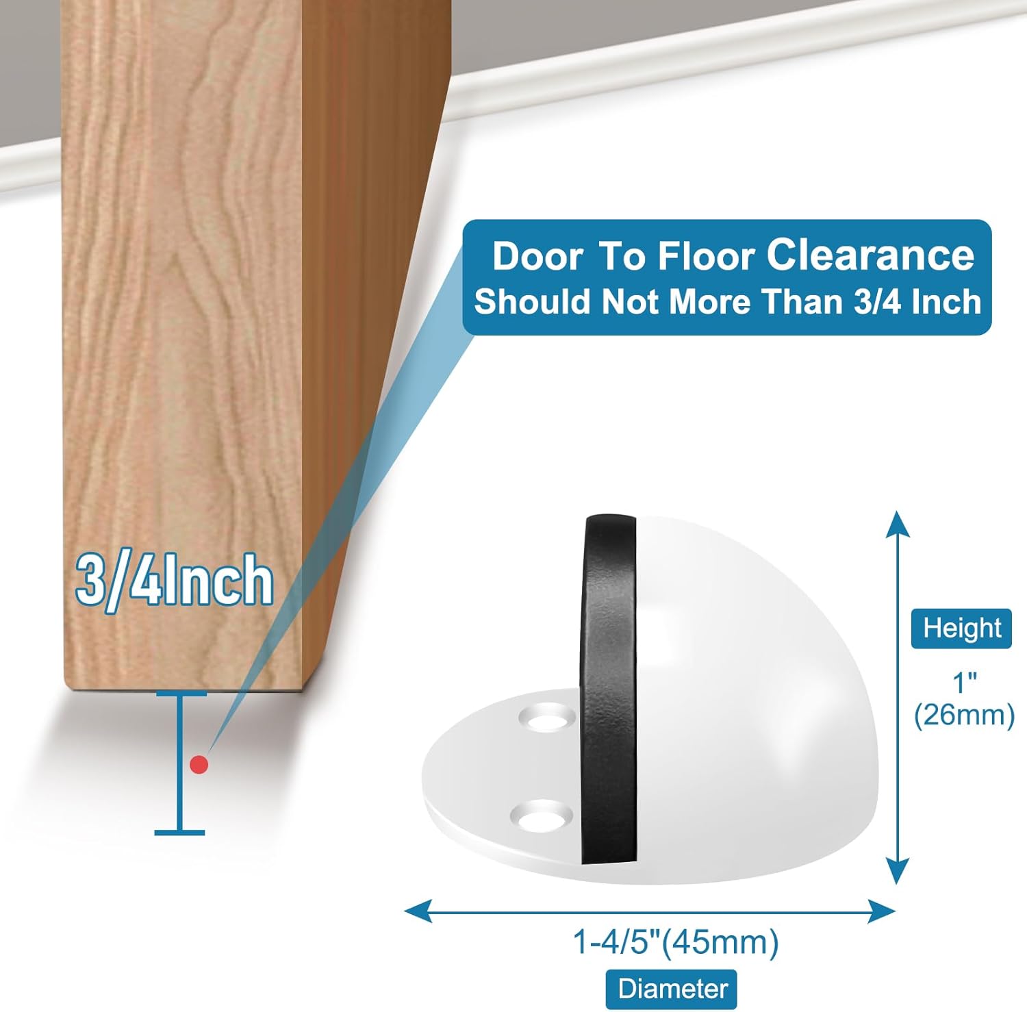 Modern & Stylish — White door stops come with smooth smooth white finished, looks modern and stylish, match with your door or floor style well. Modern door stops are 1 Inch in height, 1-4/5 Inch in diameter *** This dome door stop DOES NOT suitable for the door gap over 3/4 inch(20mm) ***