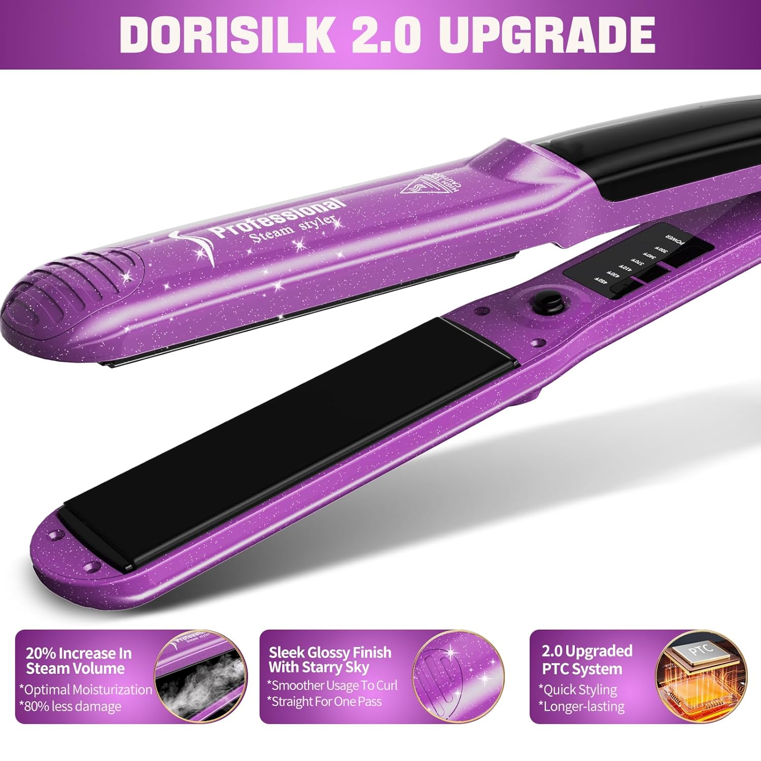 ✔𝟐.𝟎 𝐔𝐏𝐆𝐑𝐀𝐃𝐄: The premium ceramic straightening iron features a sleek design with glitter accents, evoking the captivating beauty of celestial stars. Effortlessly style your hair with enhanced smoothness, ideal for both straightening and curling. The upgraded PTC system ensures stable heating plates for consistent performance and enduring results. Revel in a 20% increase in steam volume, while reducing hair damage by 80%, ensuring optimal moisture for a vibrant and healthy appearance.