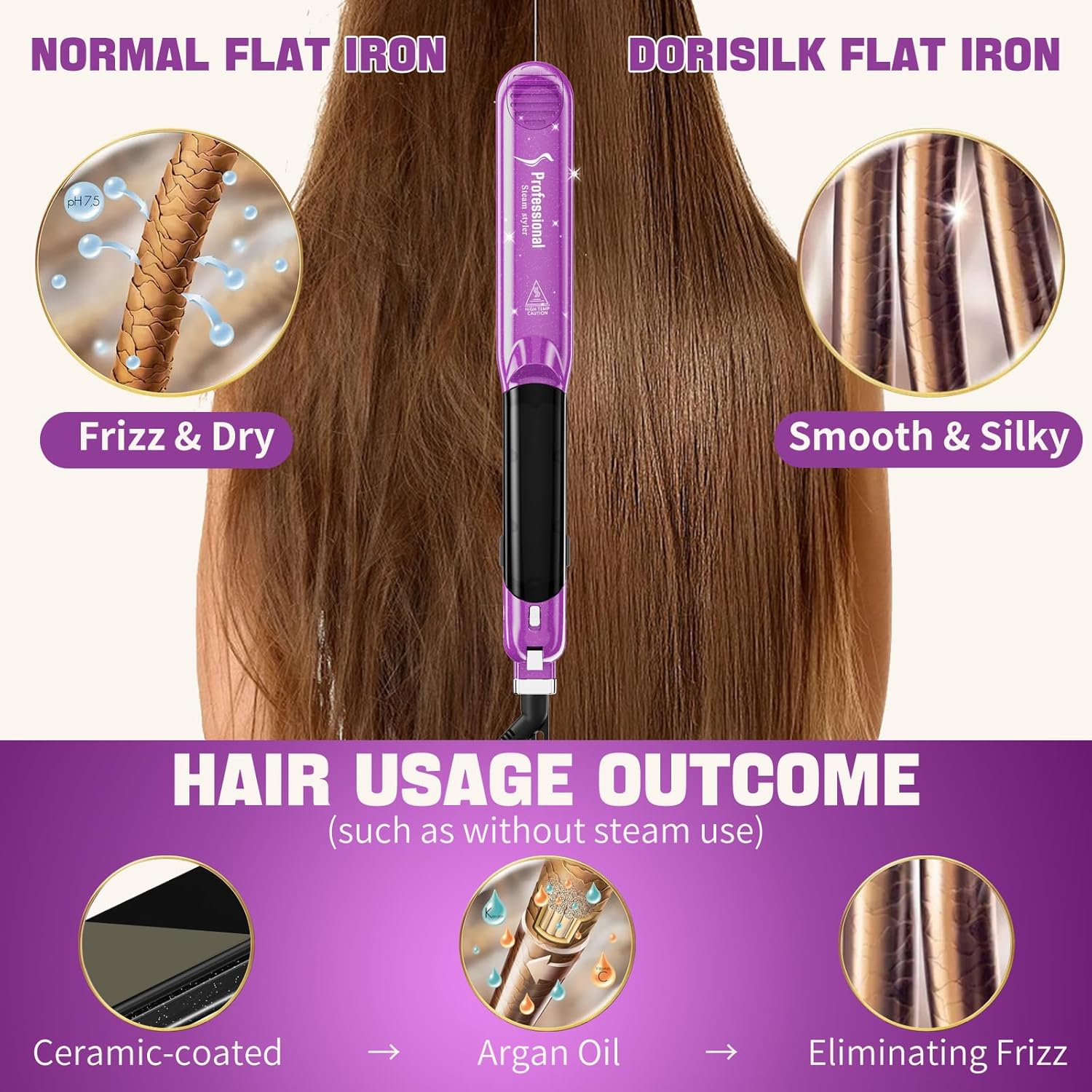 ✔𝐔𝐍𝐋𝐄𝐀𝐒𝐇 𝐁𝐄𝐀𝐔𝐓𝐘: In contrast to traditional steam hair straighteners, our steam flat irons incorporates new steam technology with adjustable settings: OFF/MED/HIGH. When used without steam, it’s ideal for swiftly styling your hair, saving you time while achieving a frizz-free, silky shiny look. When used with steam, steam is perfect for creating exquisite hairstyles, balancing moisture levels, resulting in healthier, safer hair. Both options offer invaluable styling benefits.