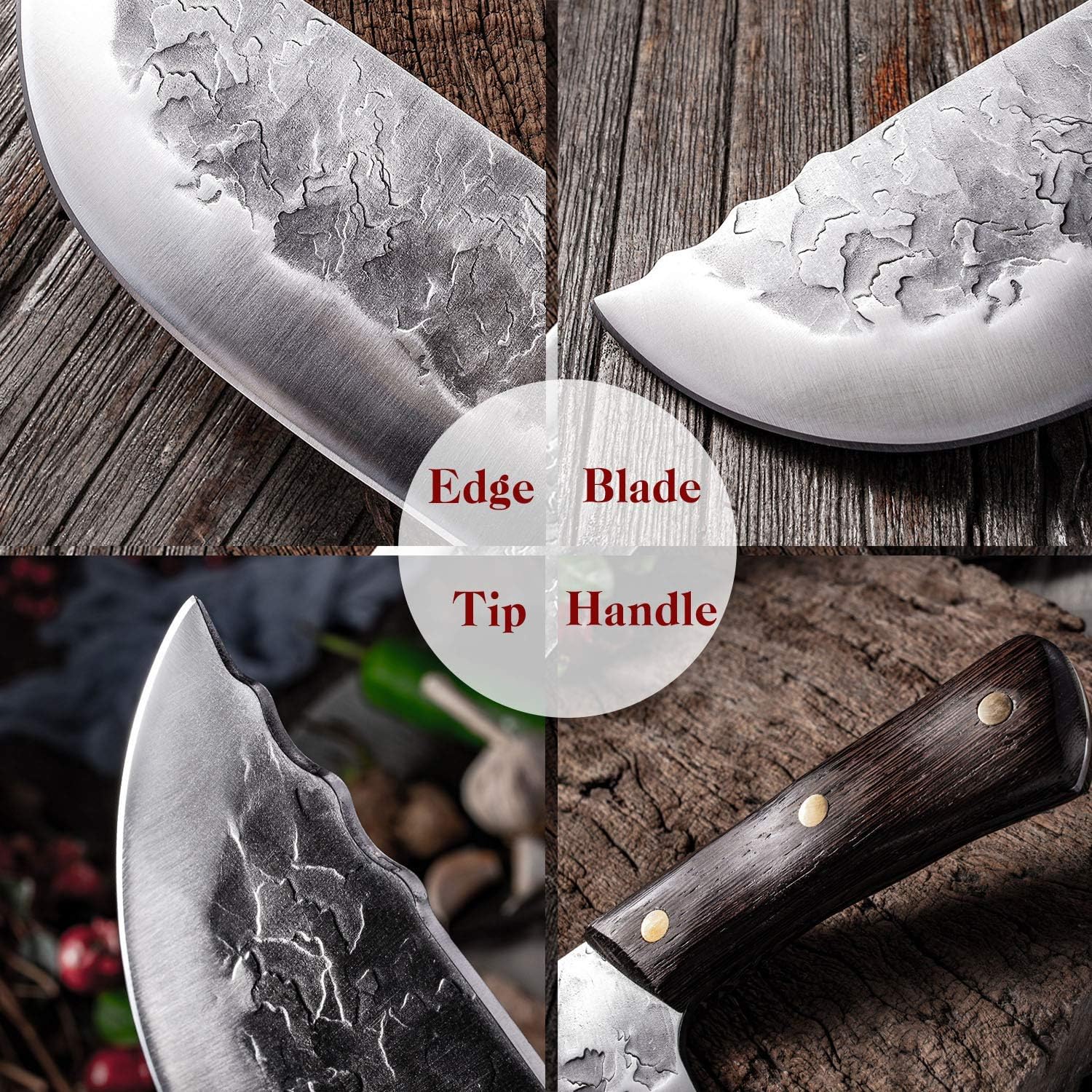 Particular Design — Hand forged chef cleaver knife is well designed with beautiful and practical liner, the superbly balanced and the weight simply makes the cutting more pleasure and powerful. Classic Forged Texture looks advance and beautiful.