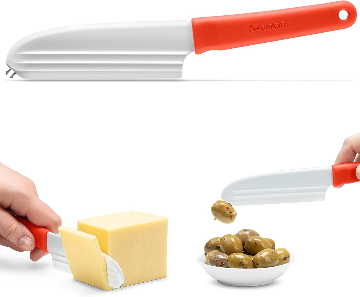 Unique barbed blade engineered to create air pockets that stop cheese from sticking while cutting