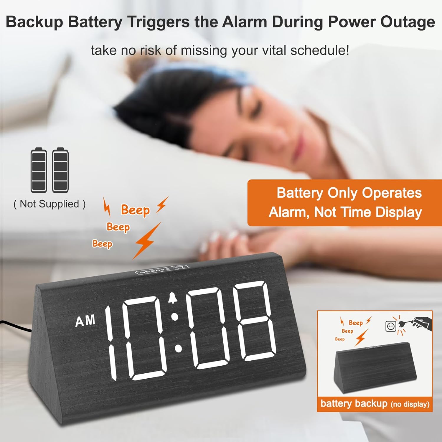 Basic Wooden Alarm Clock with Easy to See Big Numbers: the 1.8 inches large numbers on this 6.6 inches compact alarm clock are super easy to read from across the room, no complex setting, easy to program, which is an ideal desk clock for kids, seniors, the elderlys and adults.