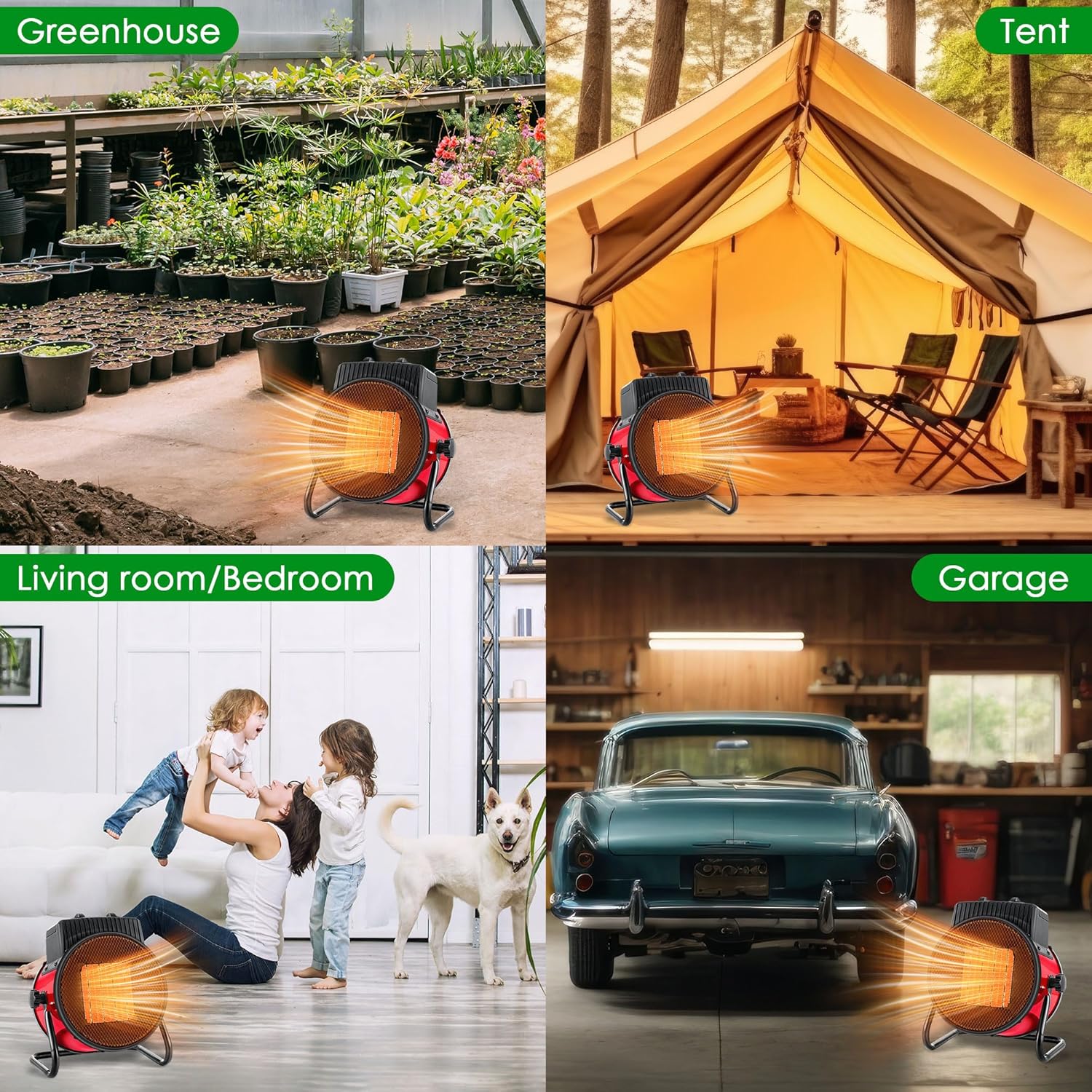 Dreyoo Greenhouse Heater Fan with Digital Thermostat, 1500W Quick Heating for Grow Tent Seed Germination, Electric Garage Warmer, Indoor Outdoor Heater, Suitable for 120 Square Feet(Red)