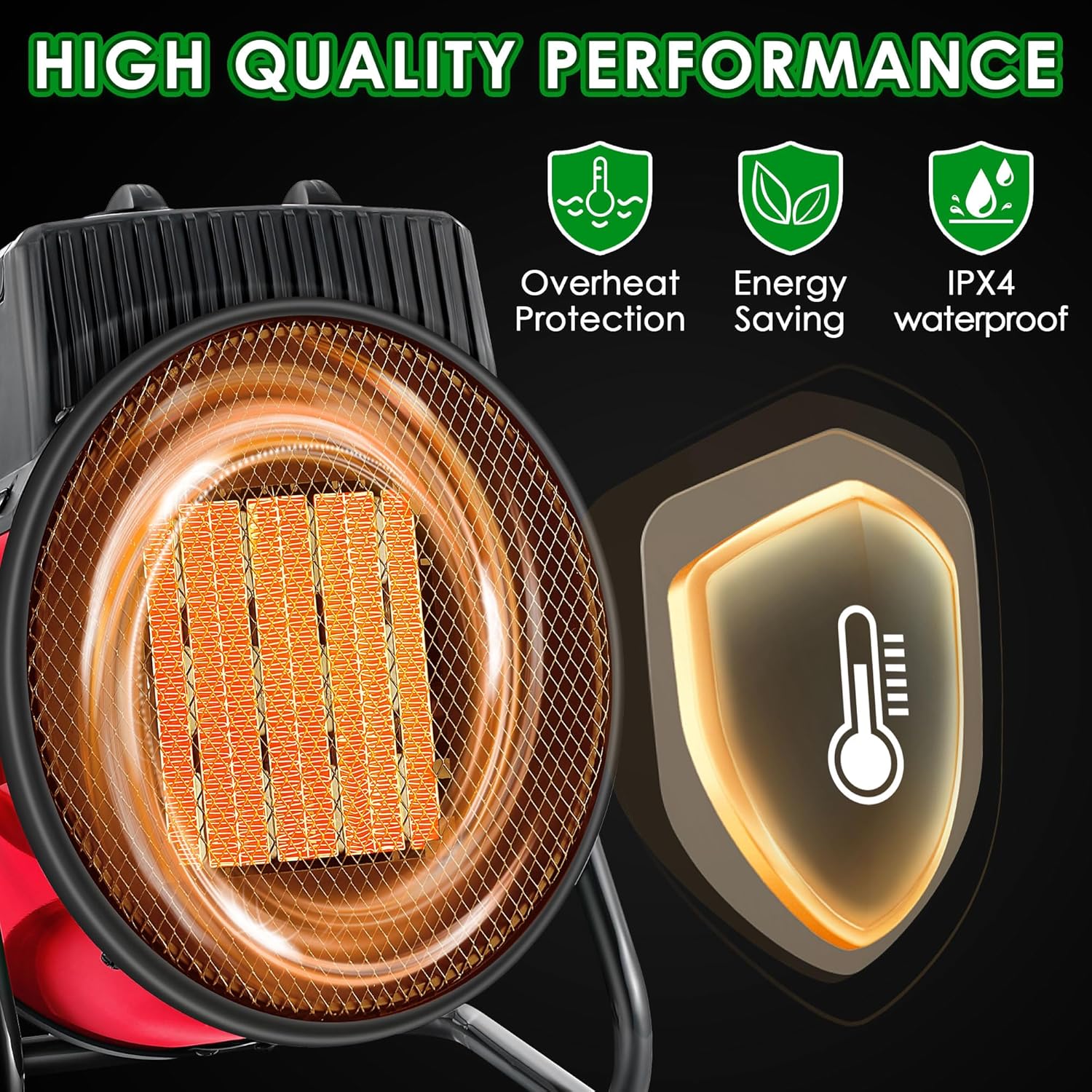 Quality and Safety: the greenhouse heater is made of quality flame retardant materials, utilizes PTC ceramic heating, IPX4 waterproof rating; Rapid cooling: safeguard against accidental burns or shutdown, enhanced durability and safety