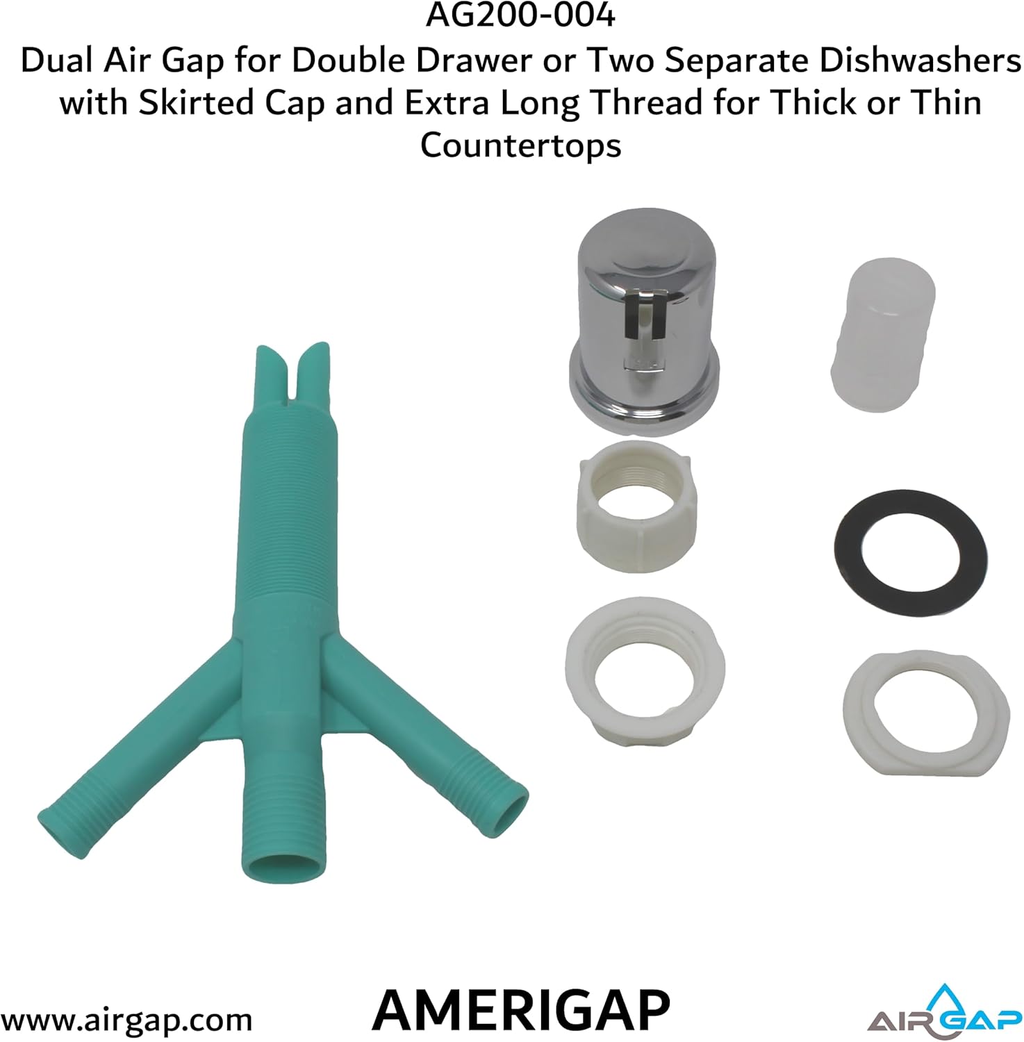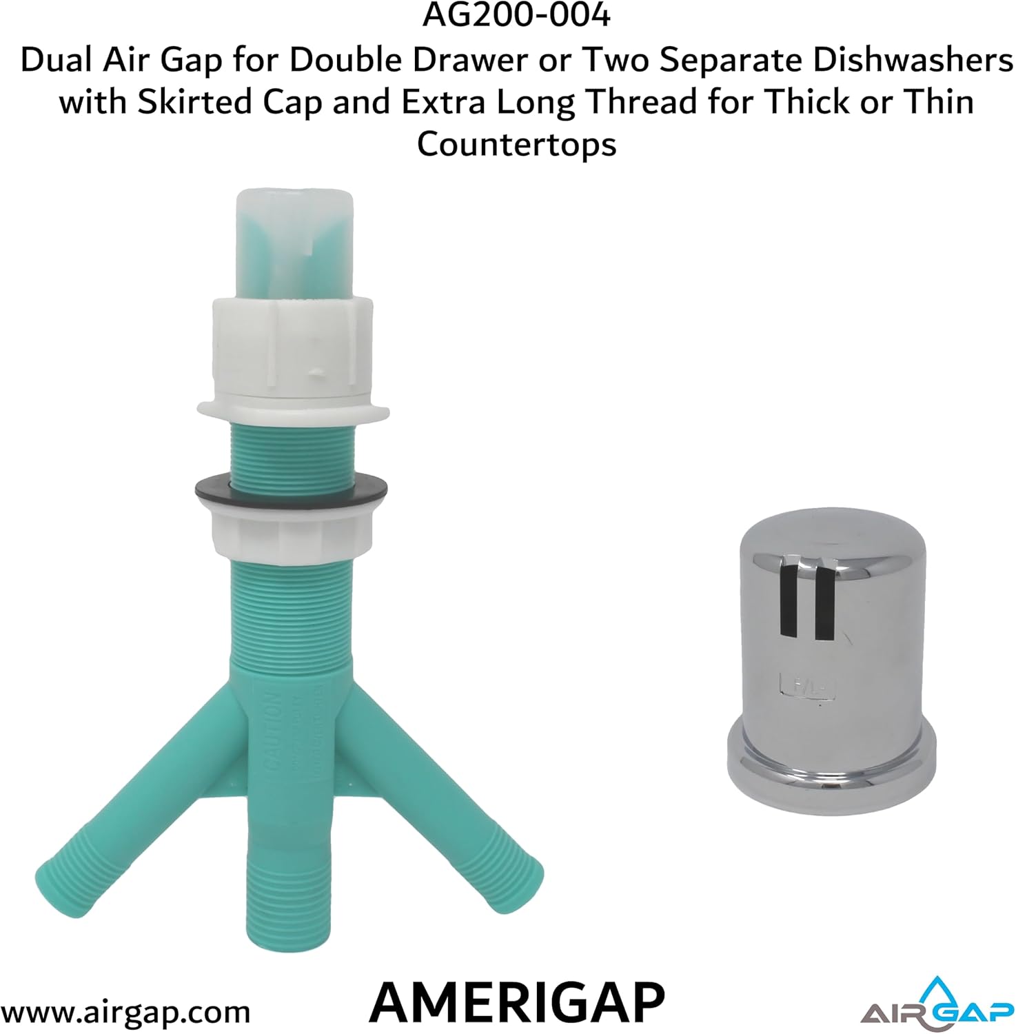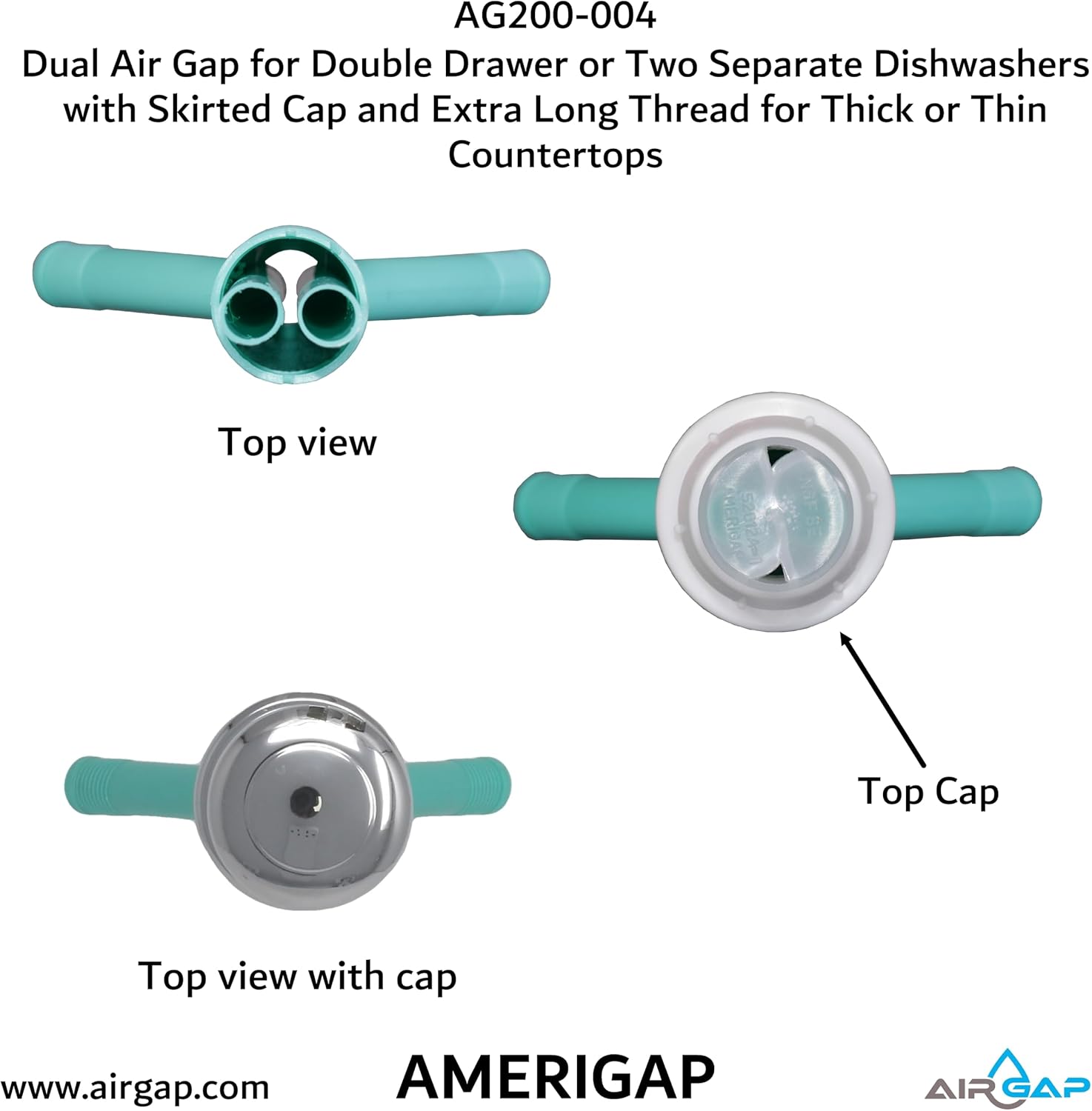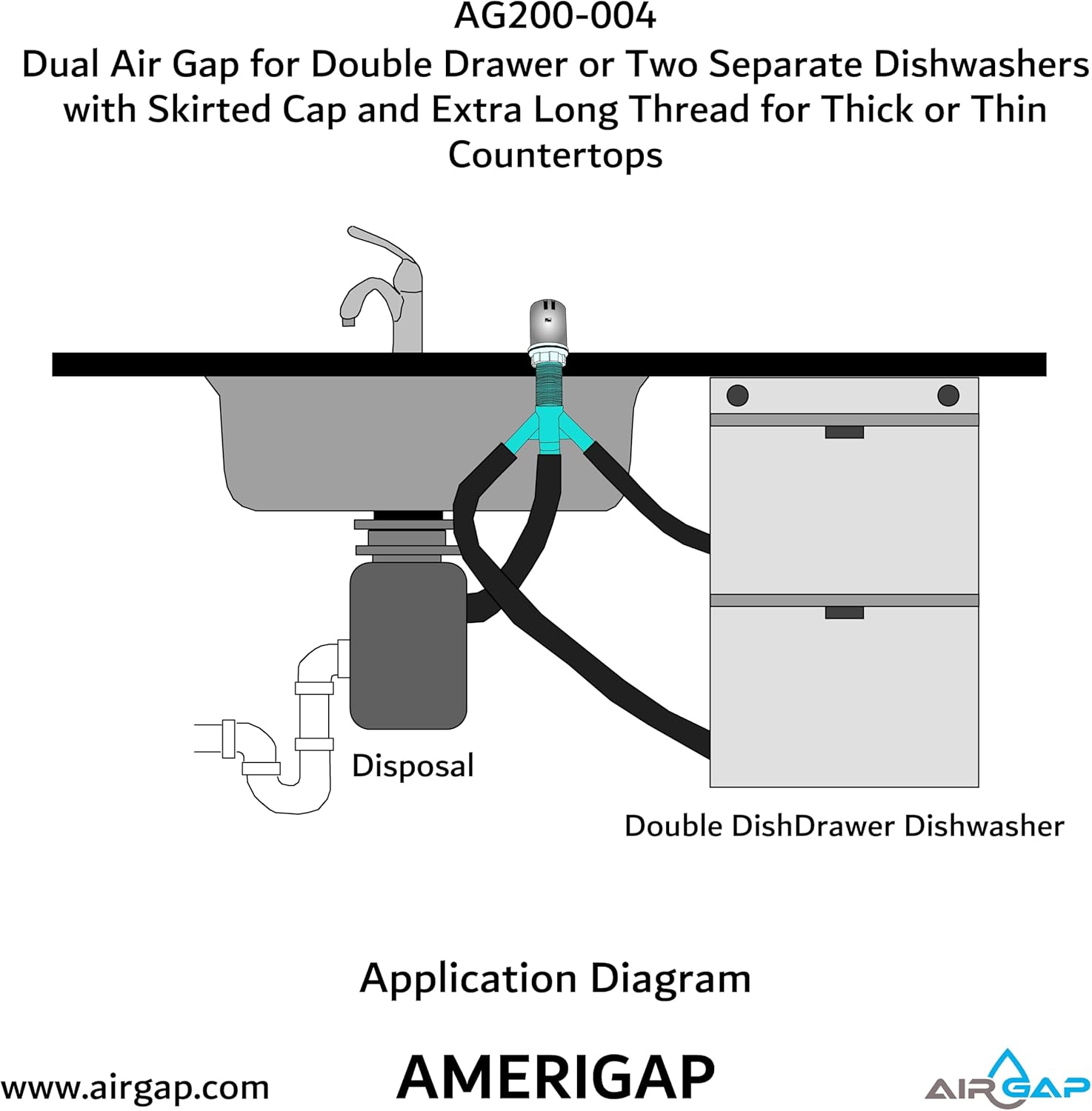 ❤ INLET PORTS: The AG200-004 accepts two standard 5/8-inch inside diameter hoses from a dual dishwasher. The hoses from the dishwasher slide onto the side ports and are secured using stainless worm clamps (not included). Make sure there are no kinks in the hose and that water passes freely. Both sides of the dishwasher can be operational at the same time. This air gap is compatible with all dual dishwashers.
