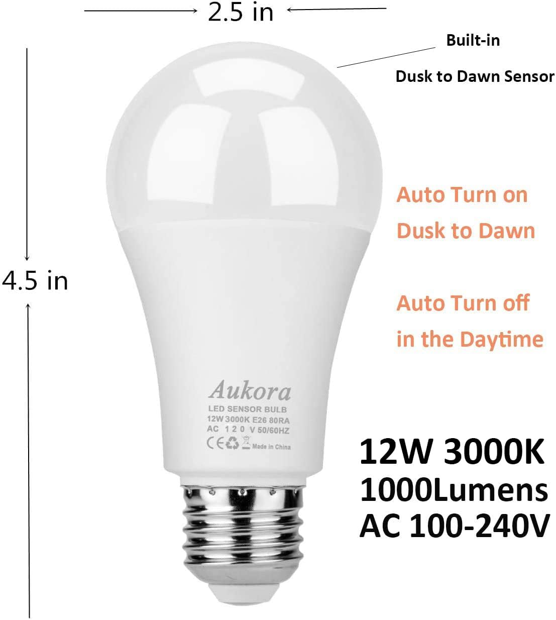 DUSK TO DAWN FEATURE: These dusk till dawn light bulbs are equipped with a built-in light sensor that turns the lights on automatically when the sun goes down and turns the light off when the sun rises(Turn on below about 15Lux and off about above 30Lux). Suitable for indoor or outdoor use.