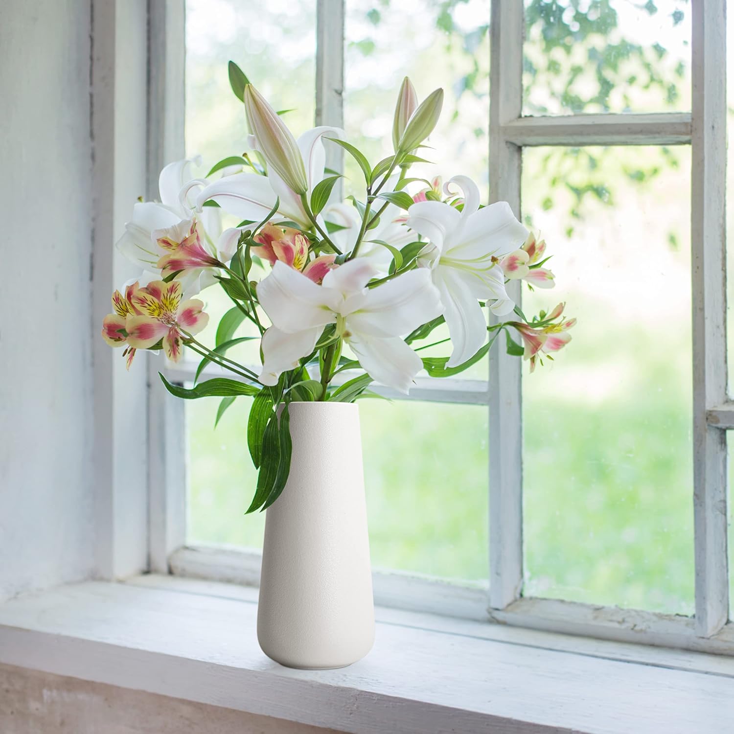 Customers find this vase beautiful and well-made, with a stable base that will last a lifetime. They appreciate its creamy white color and matte finish, noting it’s big enough for flowers and perfect for small bouquets. Customers like its simplicity, smooth surface, and consider it good value for money.
