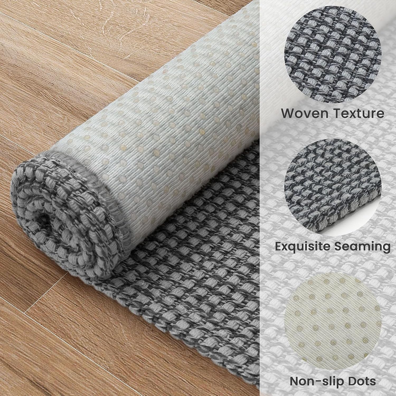 EARTHALL Woven Runner Rug 2×7 Ft Washable Runners for Hallways Cotton Non Slip Rubber Backed Kitchen Runner Braided Indoor Floor Carpet for Entryway, Hallway, Kitchen, Bedroom, Dark Gray