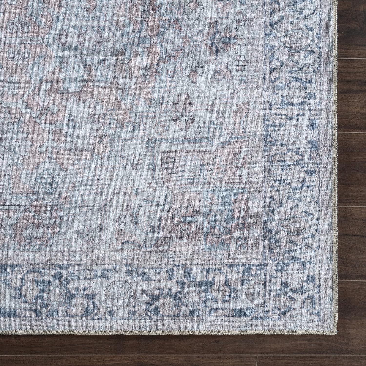 ANTIQUE ORIENTAL INSPIRED: This rug features a distressed vintage farmhouse design w an intricate medallion pattern and faded floral accents. The color palette includes neutral shades of light blue, beige, gray, blush and dusty rose, creating a timeless traditional elegance. Made in Turkey; Elevate your space w our authentic craftsmanship.