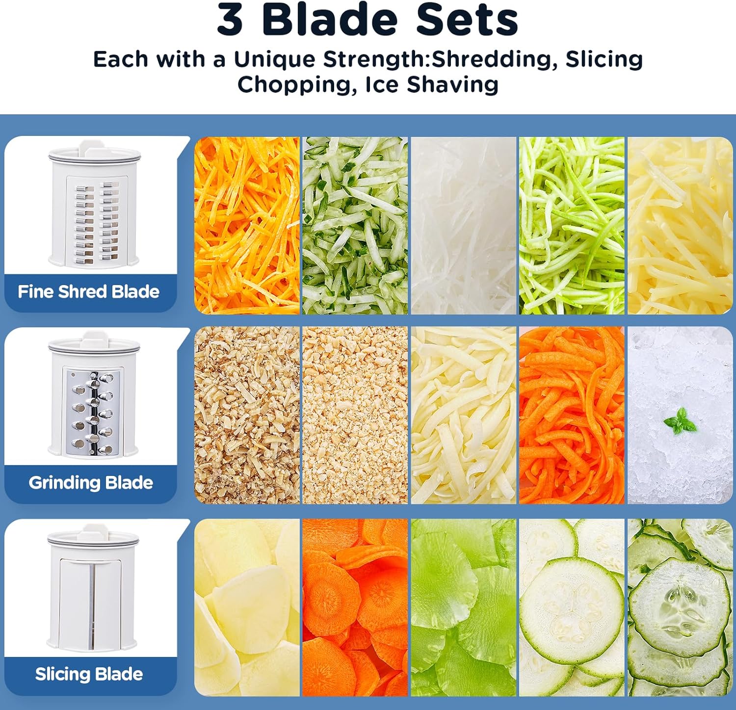 𝐕𝐞𝐫𝐬𝐚𝐭𝐢𝐥𝐞 𝐅𝐮𝐧𝐜𝐭𝐢𝐨𝐧𝐚𝐥𝐢𝐭𝐲: Our 3-in-1 cheese shredder/slicer electric handles a wide range of ingredients with ease. Equipped with three interchangeable blades – coarse sherd, fine sherd, and slicing – it effortlessly slices and dices vegetables, fruits, and even tough ingredients, offering endless possibilities for your culinary creations