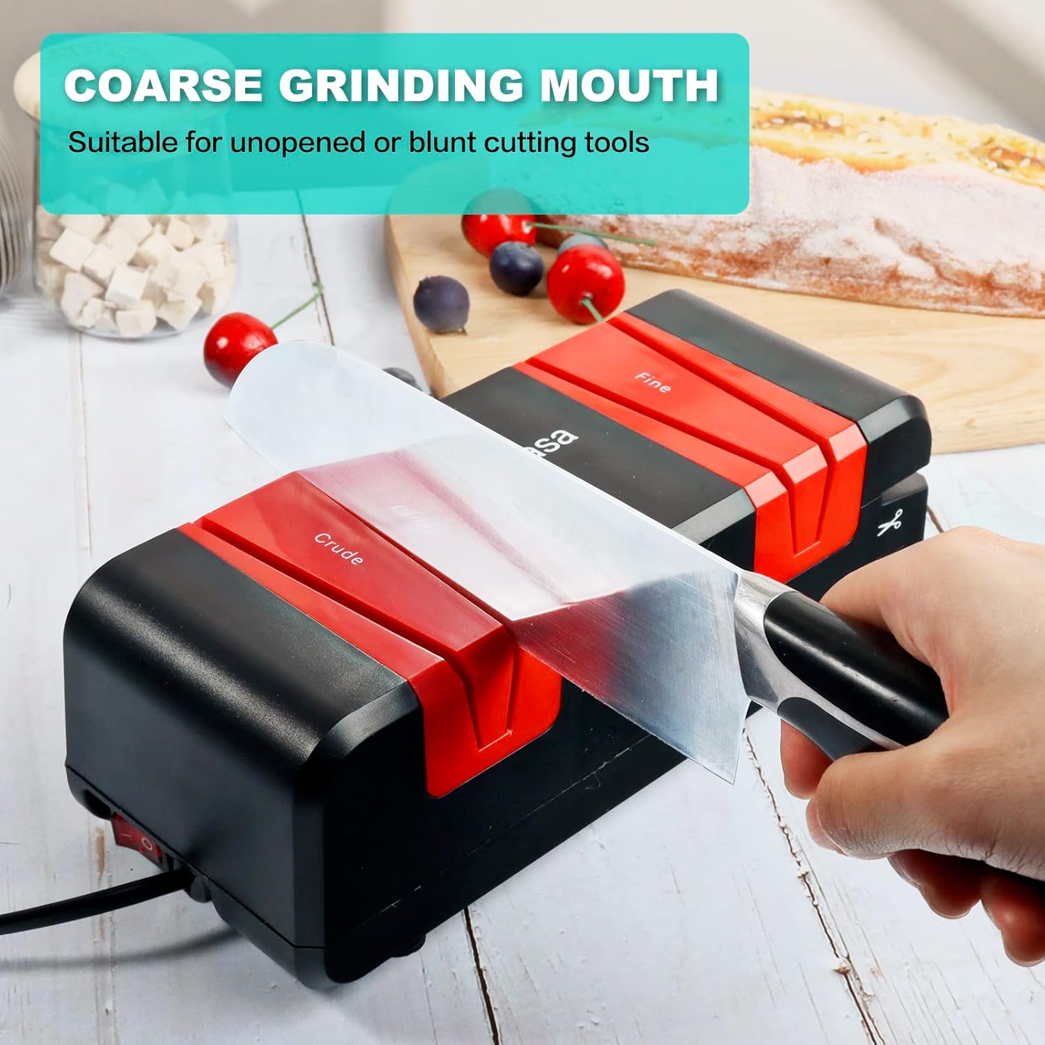 Automatic Electric Knife Sharpeners:The small and compact electric knife sharpener is designed for kitchen, and can sharpen fine-edged knives in seconds. The high-performance electric sharpener uses an advanced two-stage process to achieve precise results.