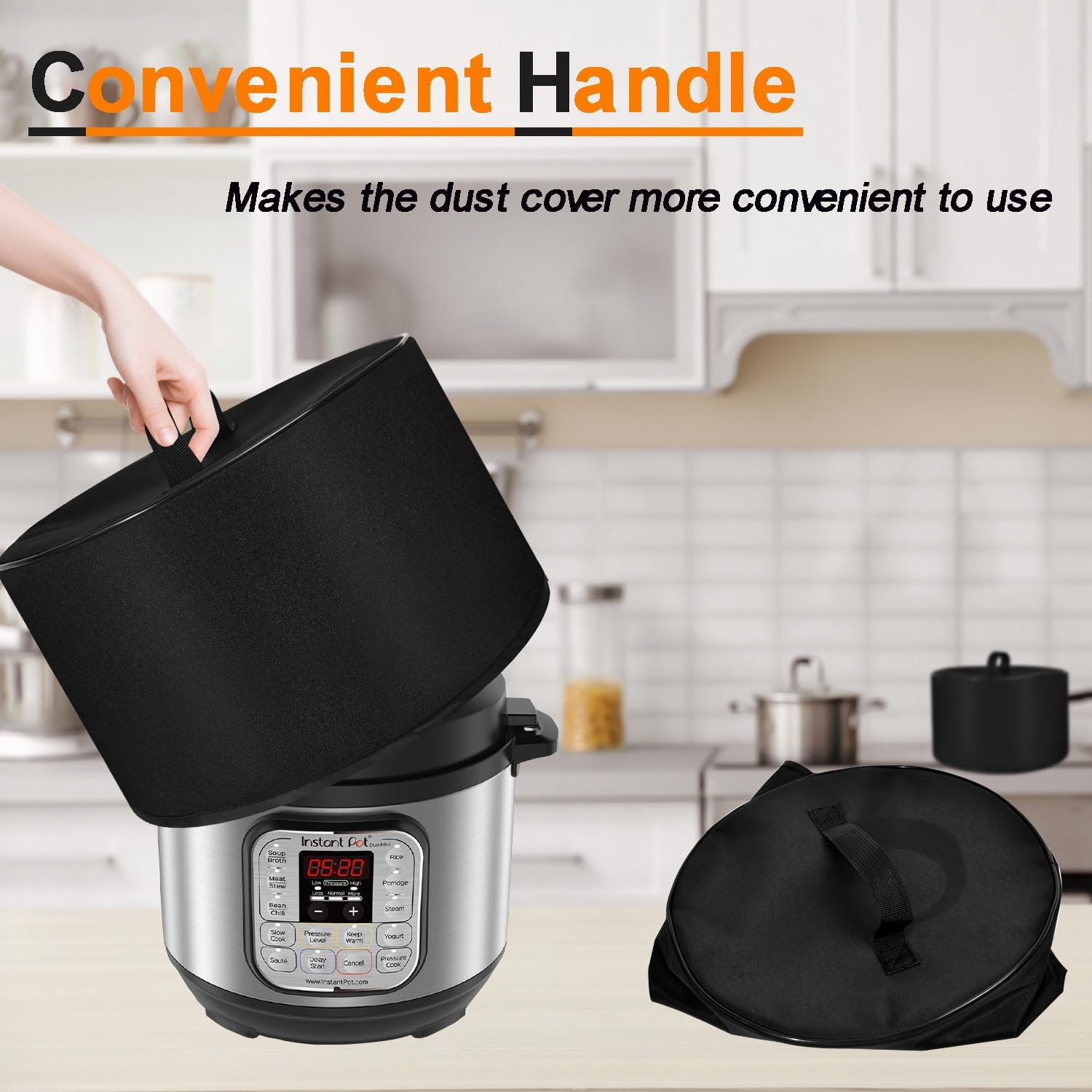 【Convenient Dust Cover】:The electric pressure cooker Cover is open at the bottom and has a convenient handle on the top of the cover (encrypted sewing), makes it easy to install by simply picking up the lightweight, one-piece cover and sliding it off the top of the cooker.