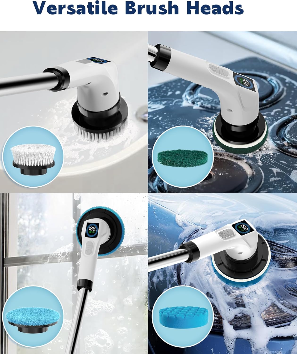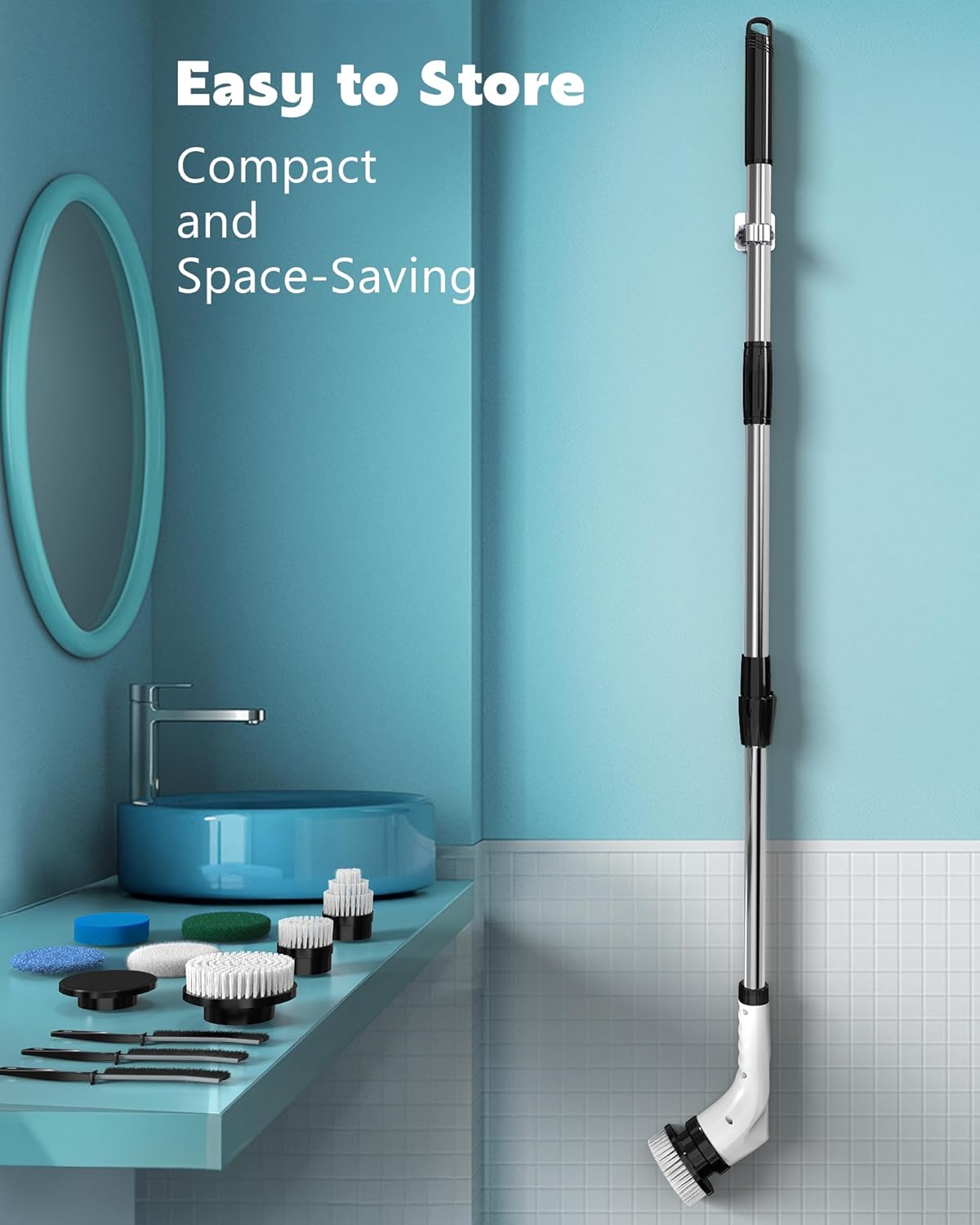 No More Exhausting Scrubbing: No one enjoys cleaning the bathroom, but when you invest in an electric scrubber, you can make the chore much quicker and easier; If your cleaning routine involves a lot of manual scrubbing, an electric scrubber will take a lot of work off your hands; These handy tools feature a spinning brush that provides all the elbow grease for you, scrubbing away dirt and grime with minimal effort; the long handle reaches high places without needing to bend, or strain