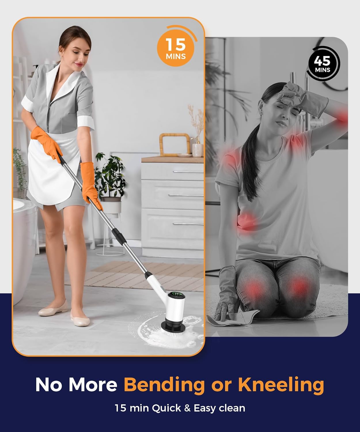 Adjustable & Ultra-Lightweight: Equipped with an extendable stainless-steel handle, this shower cleaner brush makes it easy to clean hard-to-reach areas without kneeling or bending. This electric scrubber is incredibly lightweight and user-friendly, even for children.
