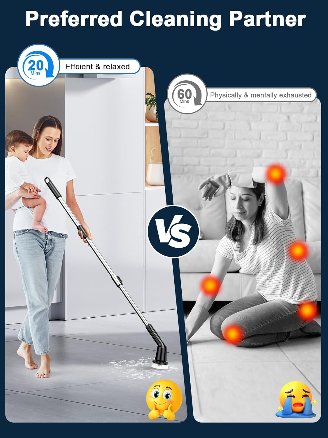 The Mothers Day Gifts Ideas: Show your loved ones you care with a practical bathroom scrubber. Our electric scrubber promotes comfortable cleaning postures, saving time and effort while protecting joints and muscles. Whether it’s for a birthday, retirement, housewarming, anniversary, Christmas, New Year, Mother’s Day, or Father’s Day, this scrubber makes an ideal gift for her/his, parents, friends, and coworkers
