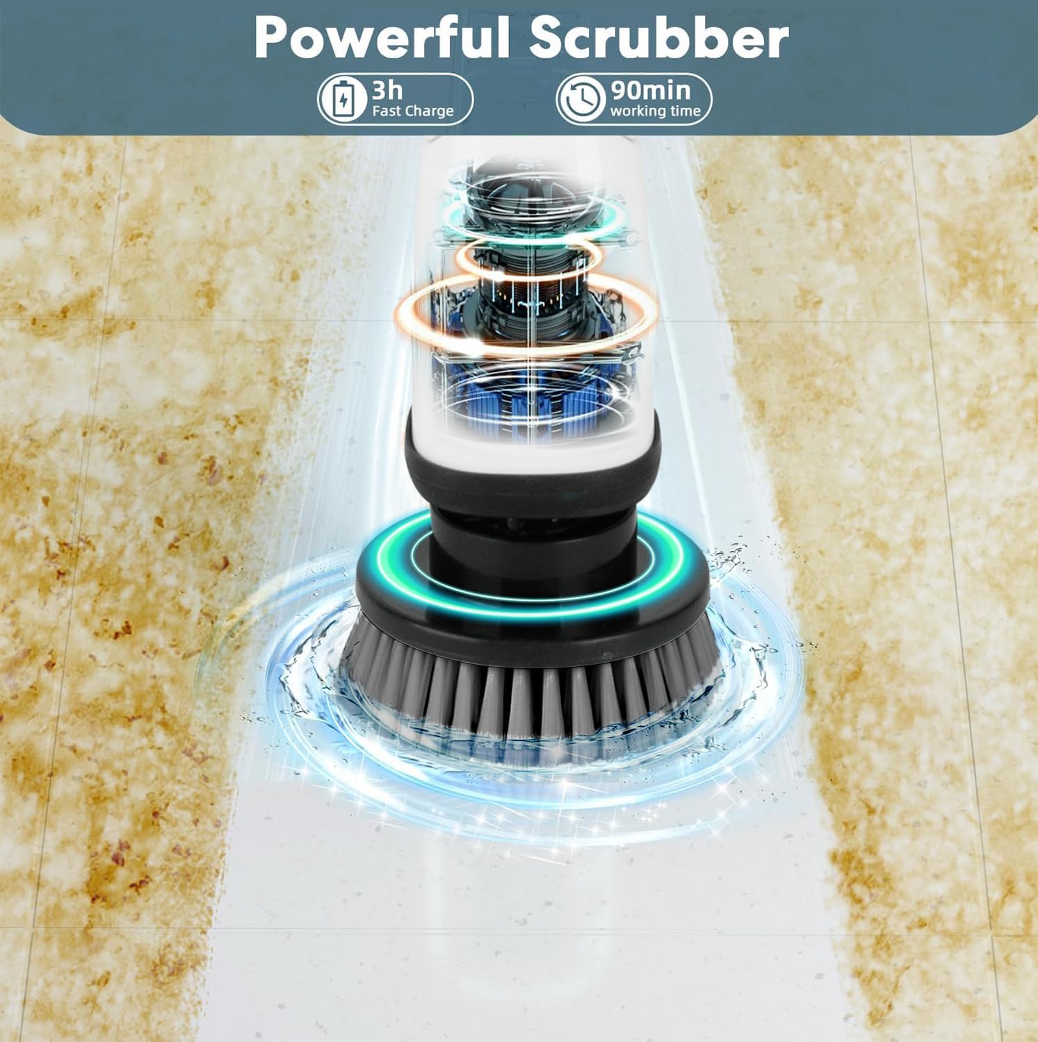Safety Prioritized: Engineered to prevent splashes and accompanied by removable brush heads for simple cleaning, this spin scrubber offers a safe and efficient cleaning solution for your home.