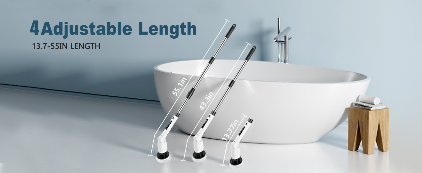 Versatile and Adjustable: Equipped with an extendable stainless-steel handle and 3 adjustable brush head angles, this electric shower scrubber easily reaches tricky spots without the need for uncomfortable positions.