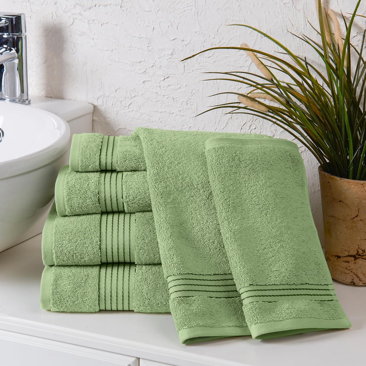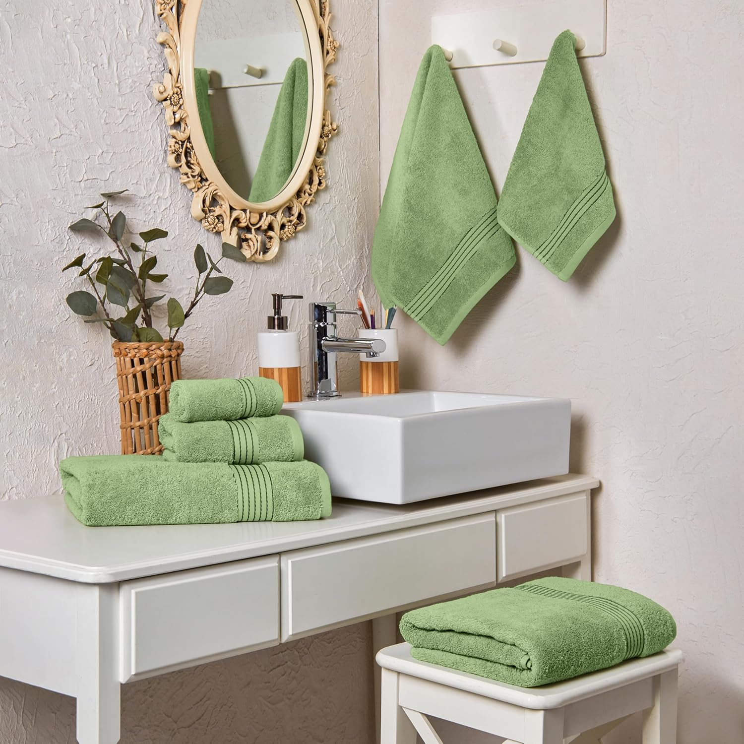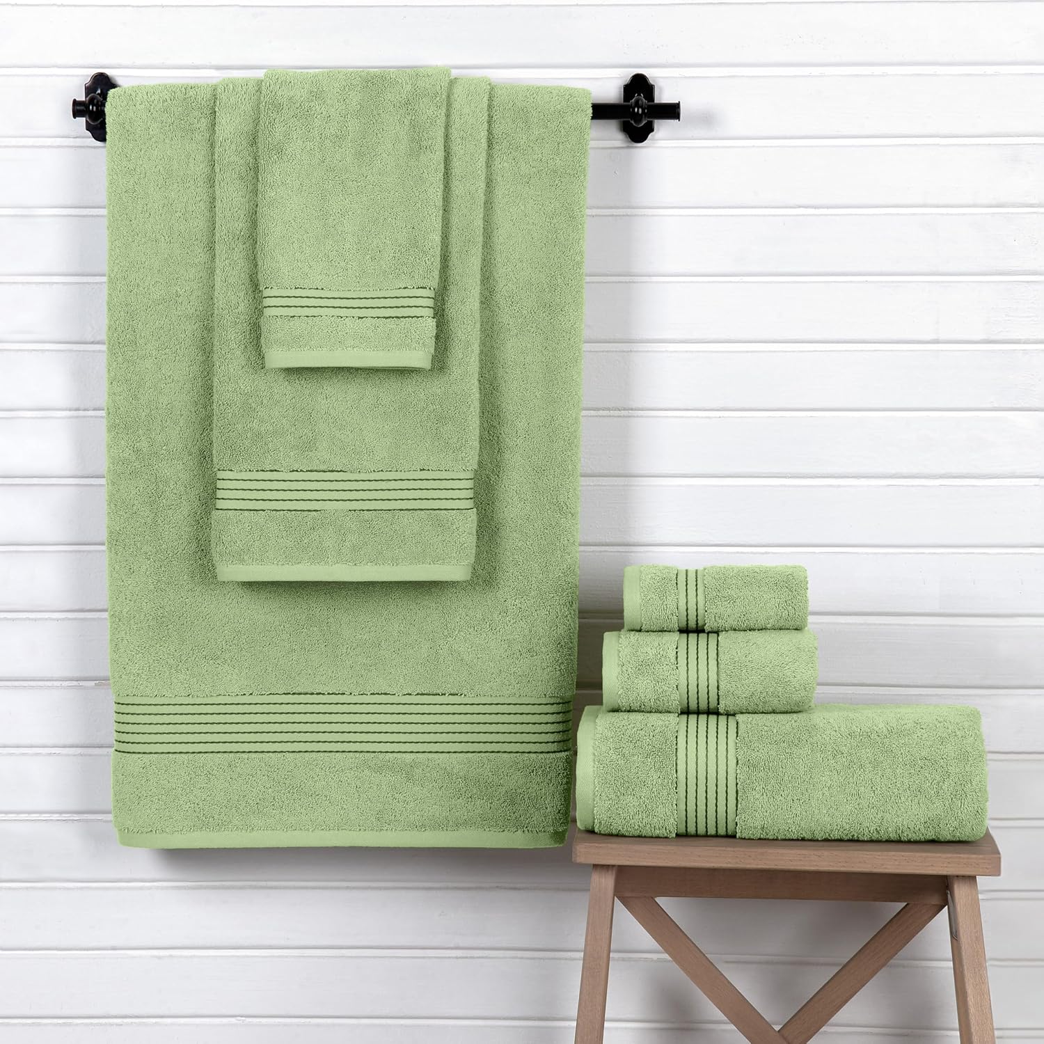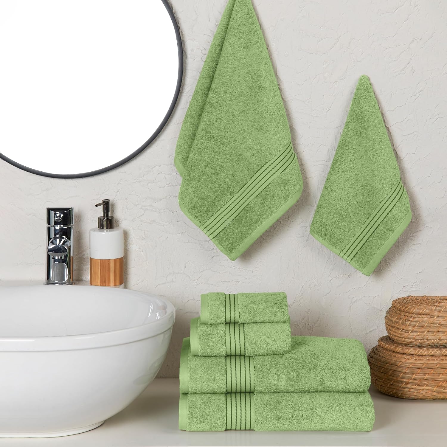 Transform your bathing moments into an indulgent escape with the luxury of our 100% Turkish cotton Elegant Comfort 6-piece towel set. This cotton towel set is a beautiful and carefully crafted product with a lot of attention to details. This premium collection is finished with a beautiful textured dobby striped border that adds a nice touch to your bathroom. Elegant Comfort luxury cotton towel sets, are made from 680 GSM Turkish cotton, making them generously plush, highly absorbent, dry quickly and super soft to touch for maximum comfort. Our towel sets are Oeko-Tex certified. They do not contain any harmful substances or materials. Each set contains 2 pieces of bath towels measuring 27 x 54 inches, 2 pieces of hand towels measuring 16 x 28 inches and 2 pieces of washcloths measuring 13 x 13 inches. From wrapping yourselves in bath towels after shower, drying your hands or to cleaning your face with a washcloth. These towels will stay beautifully soft and fluff even more after repeated washes.