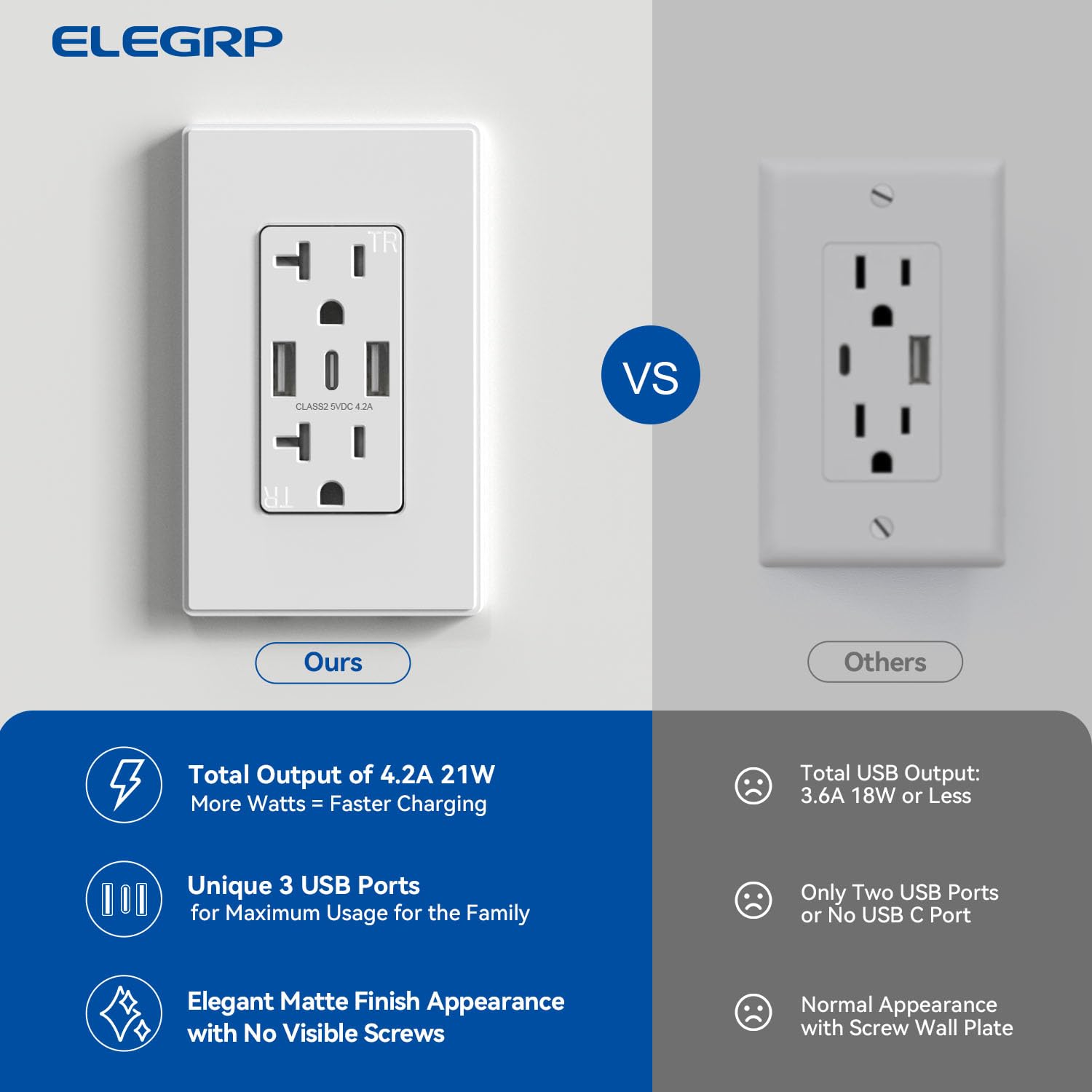✅【Matte Finish & Screwless Wall Plate】 The elegant matte surface enhances modern decor, and the durable thermoplastic housing resists impacts and scratches. Comes with a sleek, screwless wall plate for a seamless look.