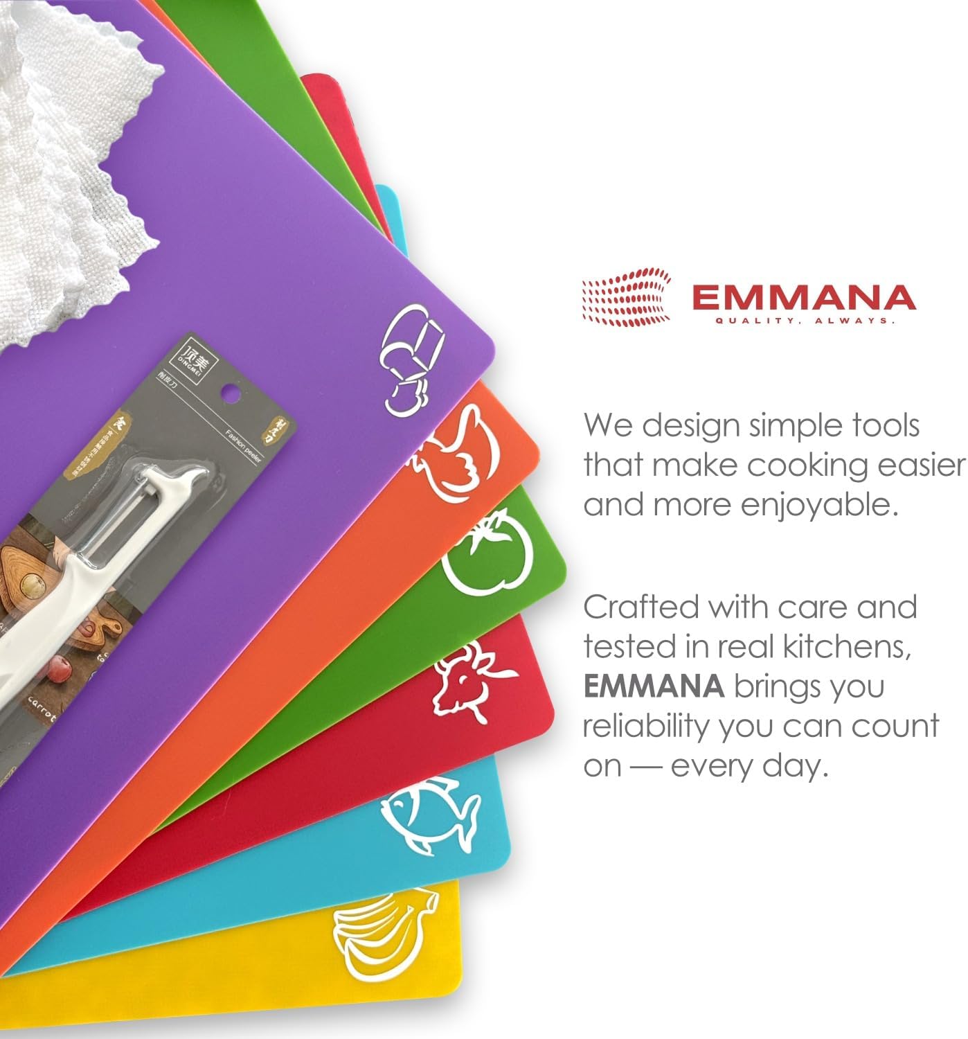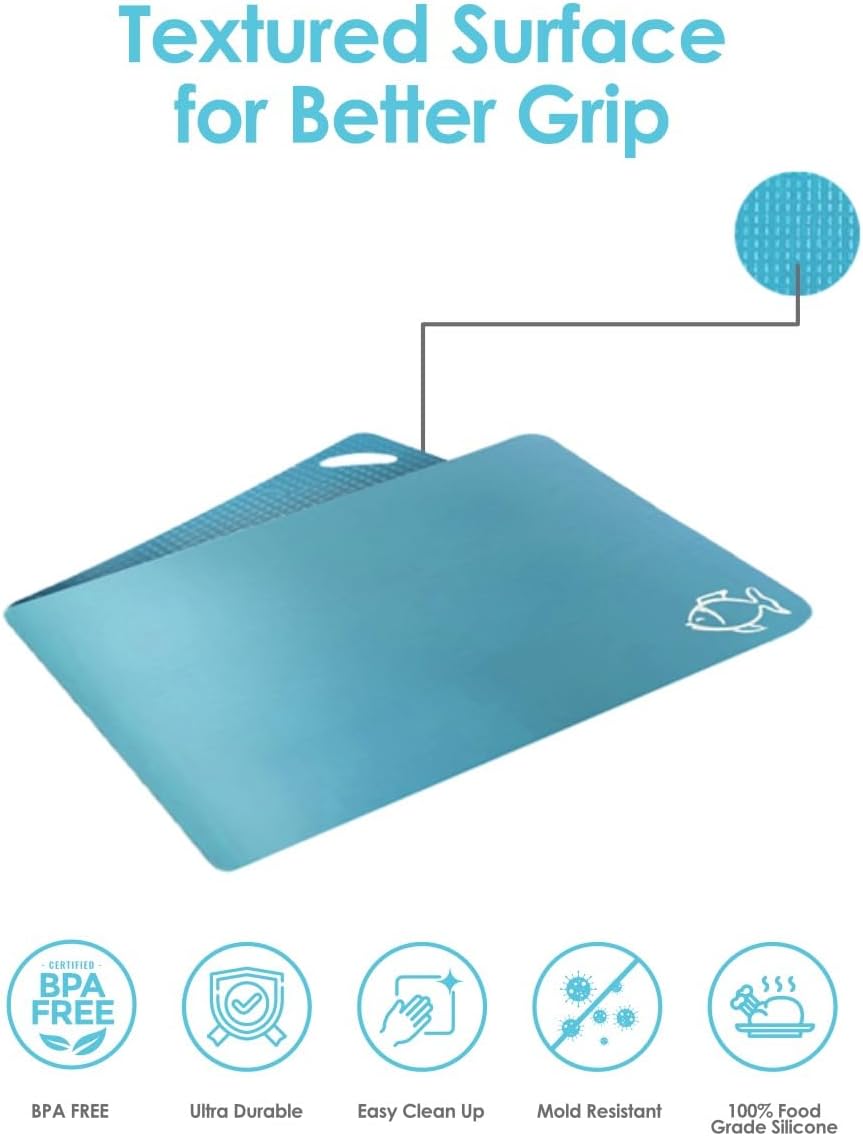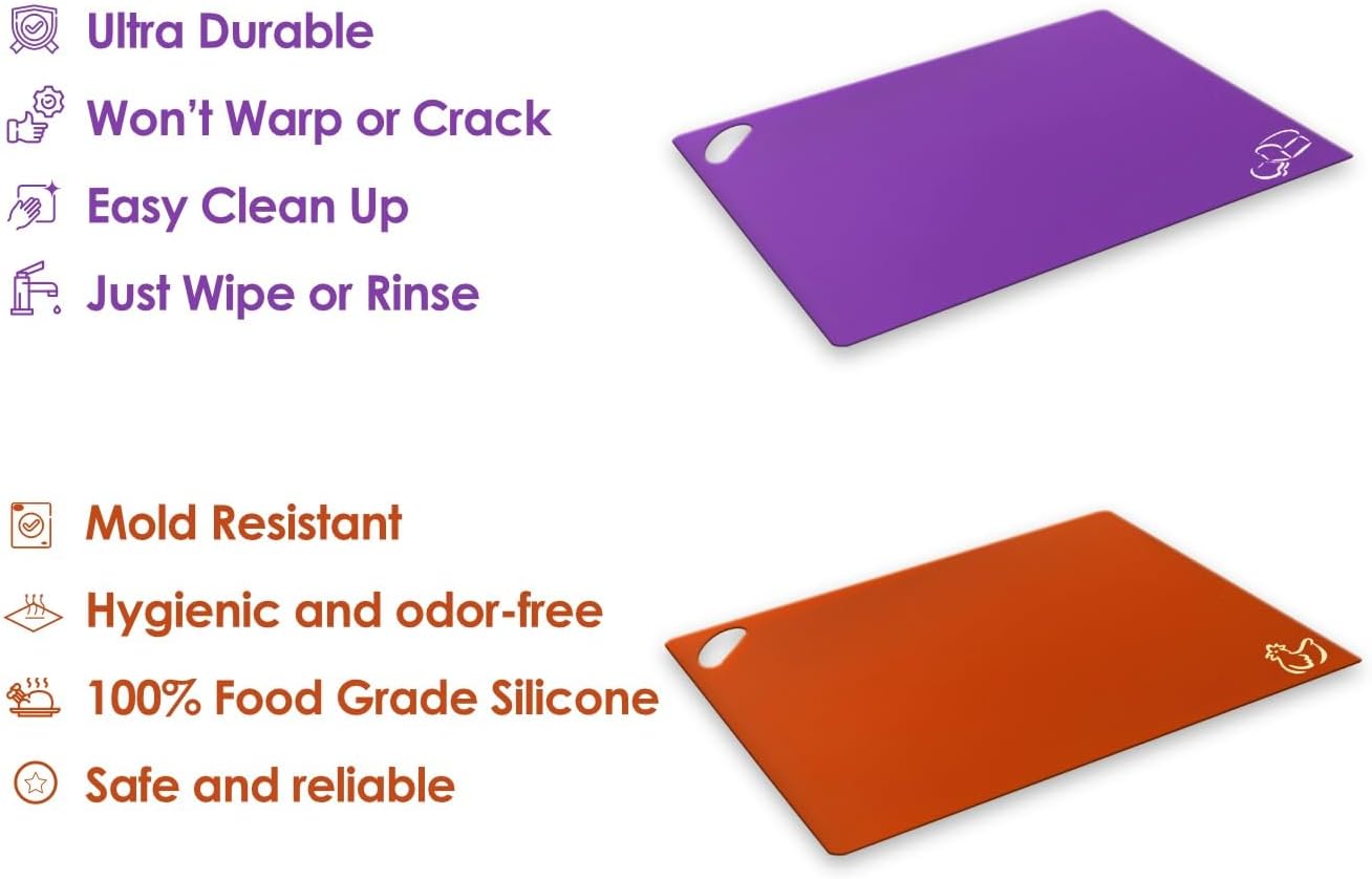 [DURABLE AND FLEXIBLE DESIGN]: Made from extra-thick, BPA-free plastic, these cutting boards resist bending, cracking, and warping under daily use. Built to endure even the toughest chopping tasks, they’re ideal for all types of food prep, ensuring durability you can rely on.