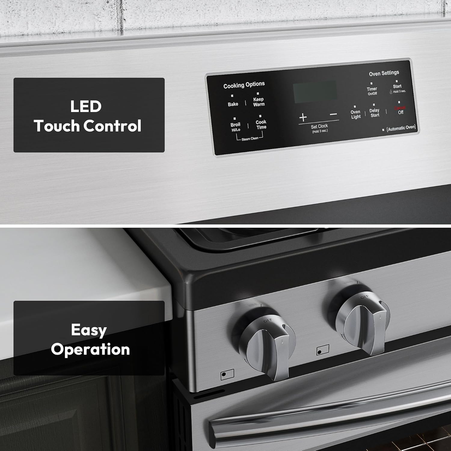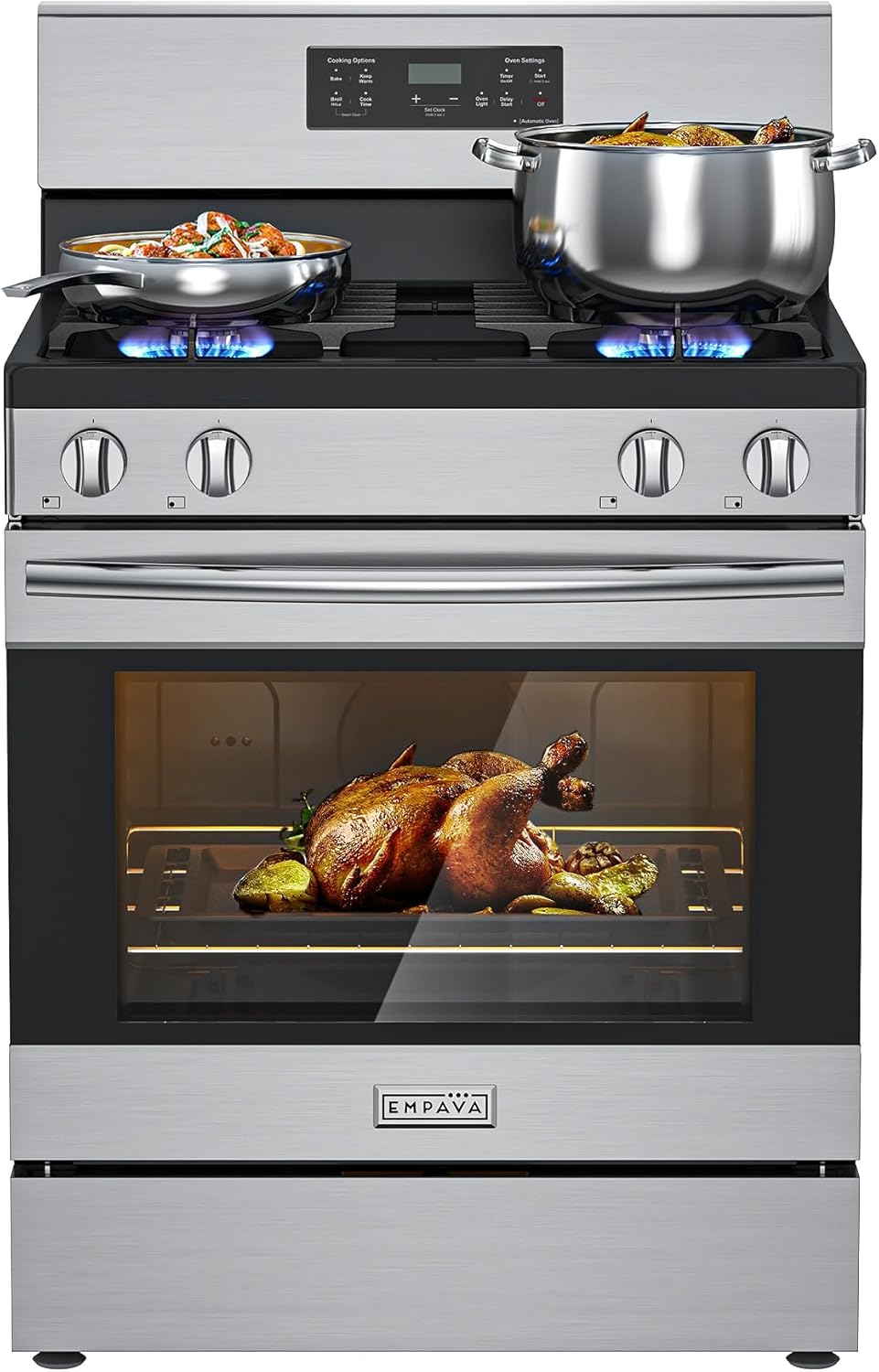 Modern Gas Stove with Oven Controls: Effortlessly operate your Empava gas range with the sleek LED touch control panel. Easily set timers, adjust temperatures, and select functions with intuitive, fingertip precision